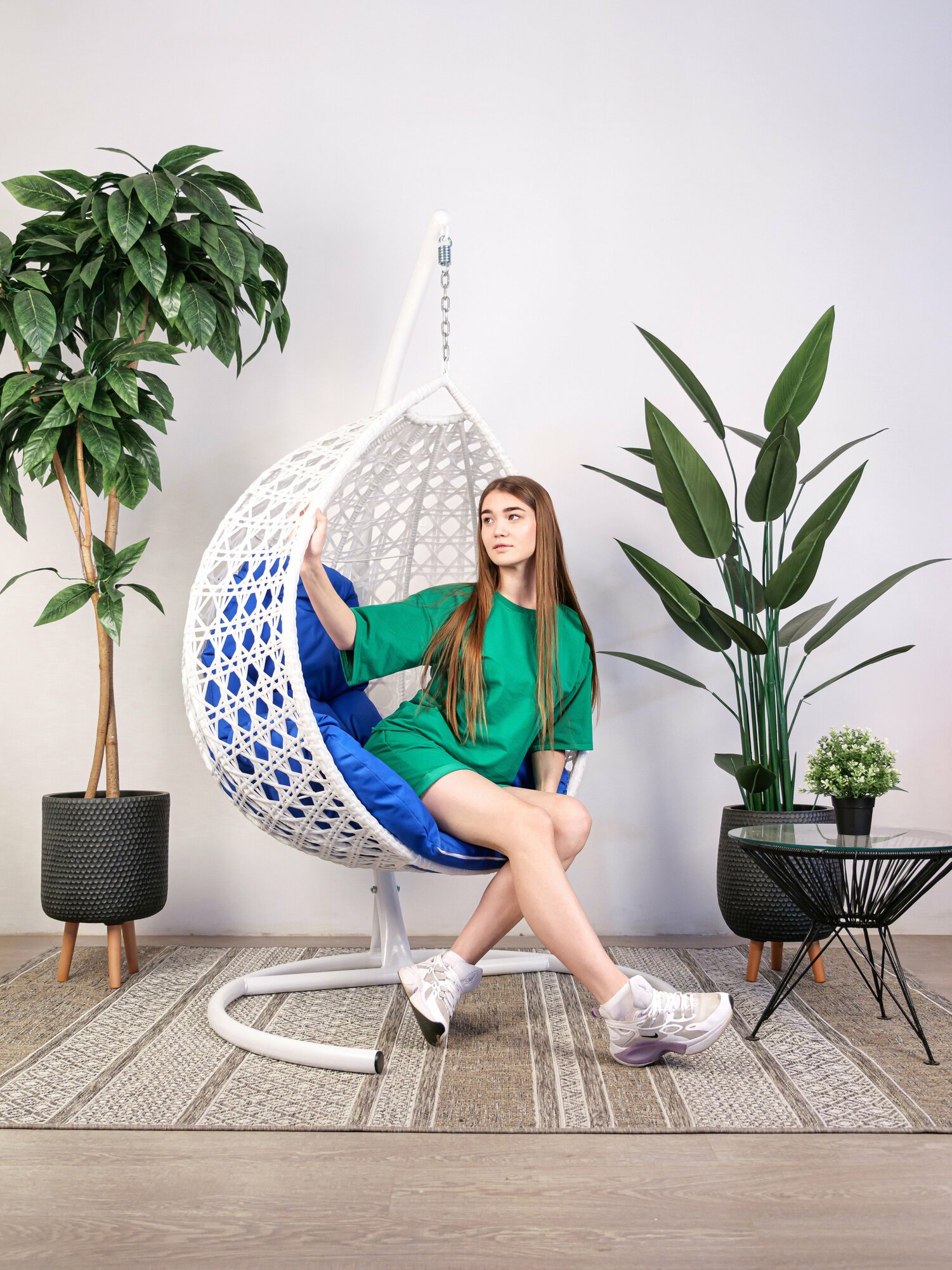 Подвесное кресло капля Люкс белое, зелёная подушка