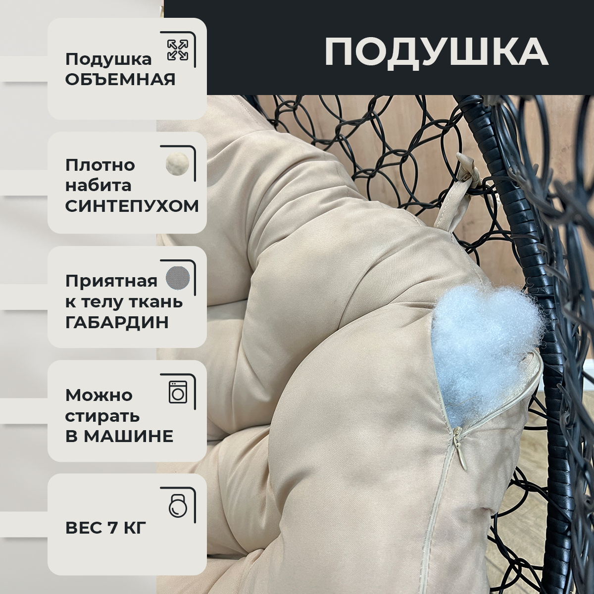 СохранитьПодвесное кресло Pletenev Двухместное чёрное с Бежевой подушкой интересное: