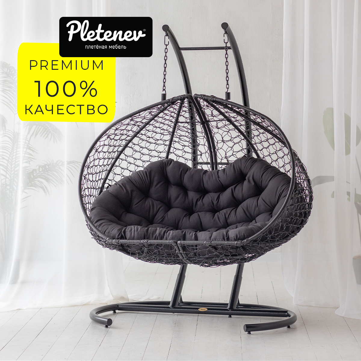 Купить Подвесное кресло Pletenev Двухместное чёрное с чёрной подушкой