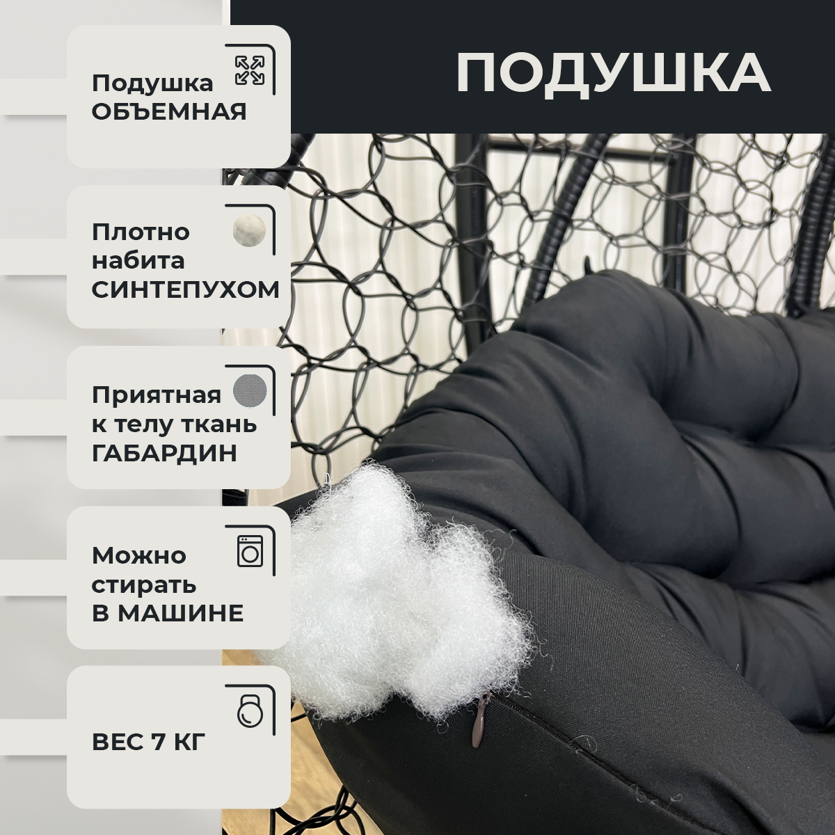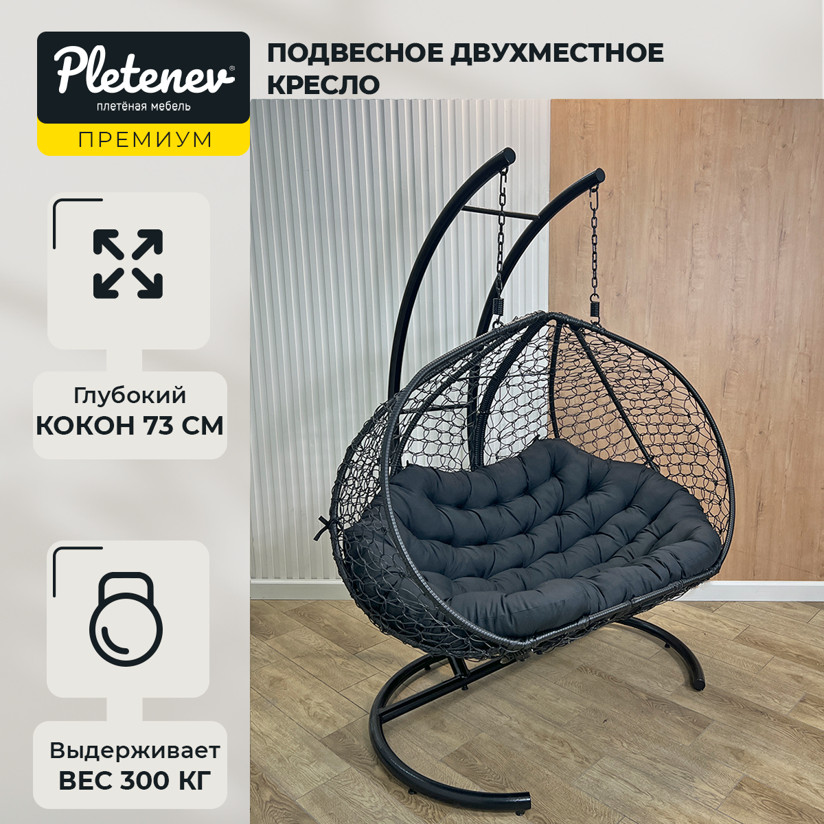 СохранитьПодвесное кресло Pletenev Двухместное чёрное с чёрной подушкой интересное: