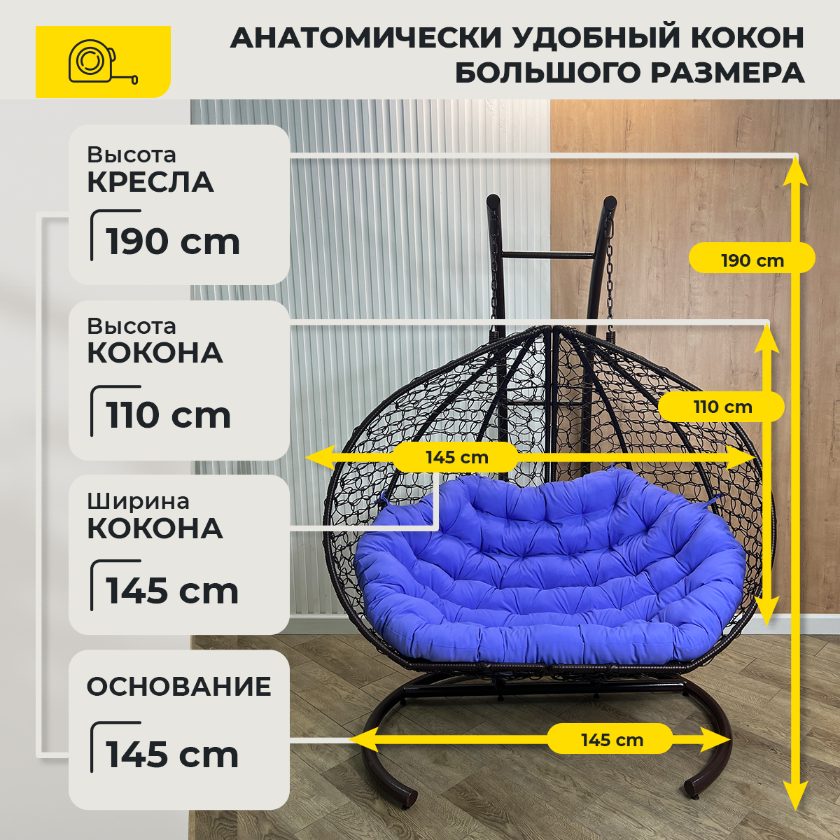Подвесное кресло Pletenev Двухместное чёрное с Коричневой подушкой