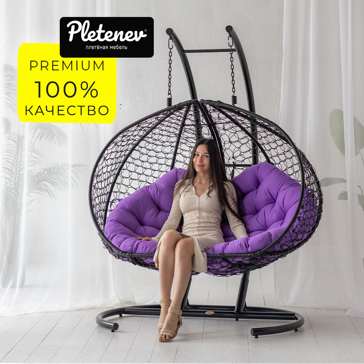 Купить Подвесное кресло Pletenev Двухместное чёрное с Фиолетовой подушкой