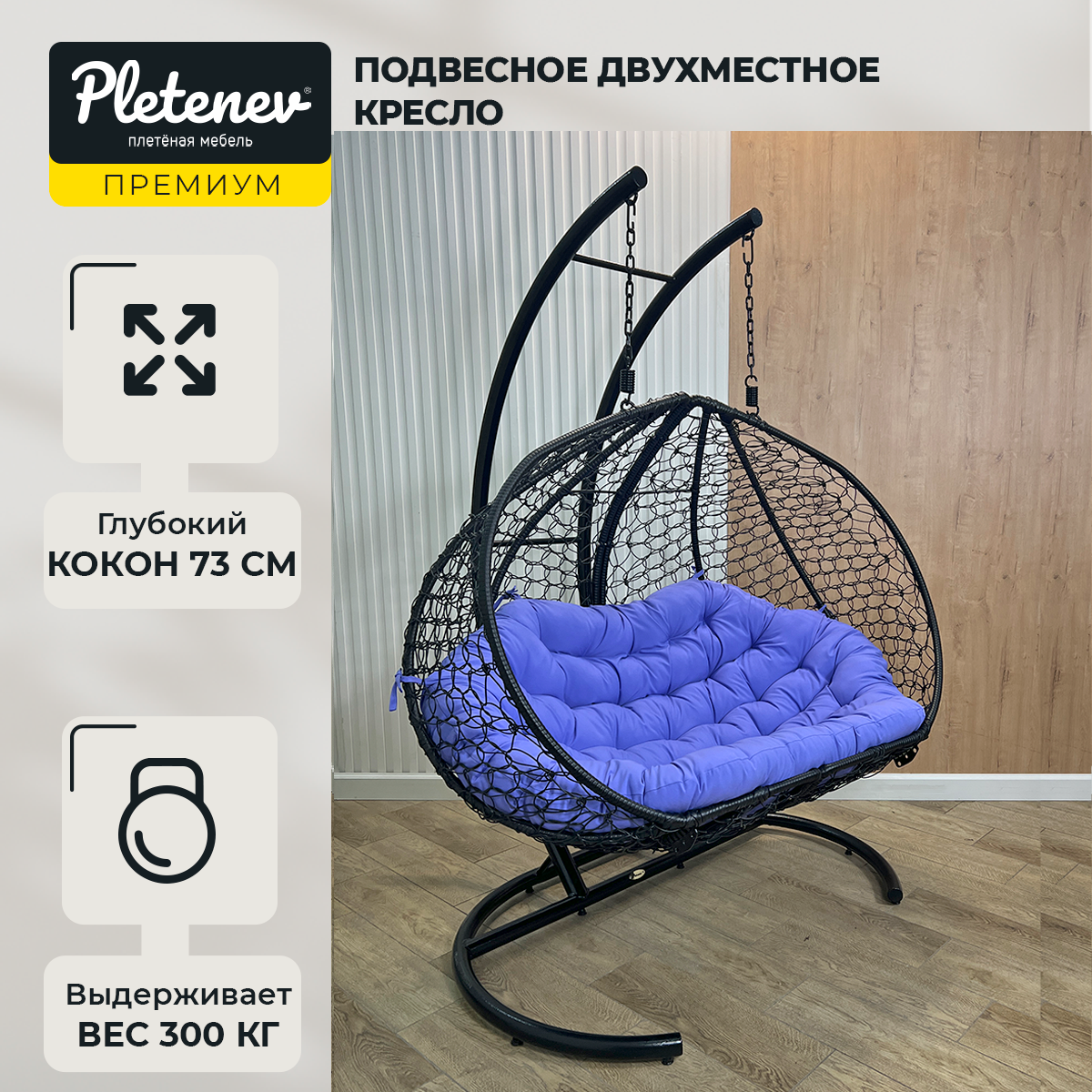 СохранитьПодвесное кресло Pletenev Двухместное чёрное с Фиолетовой подушкой интересное: