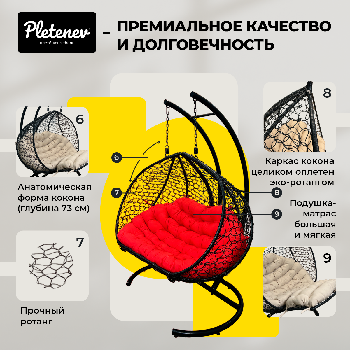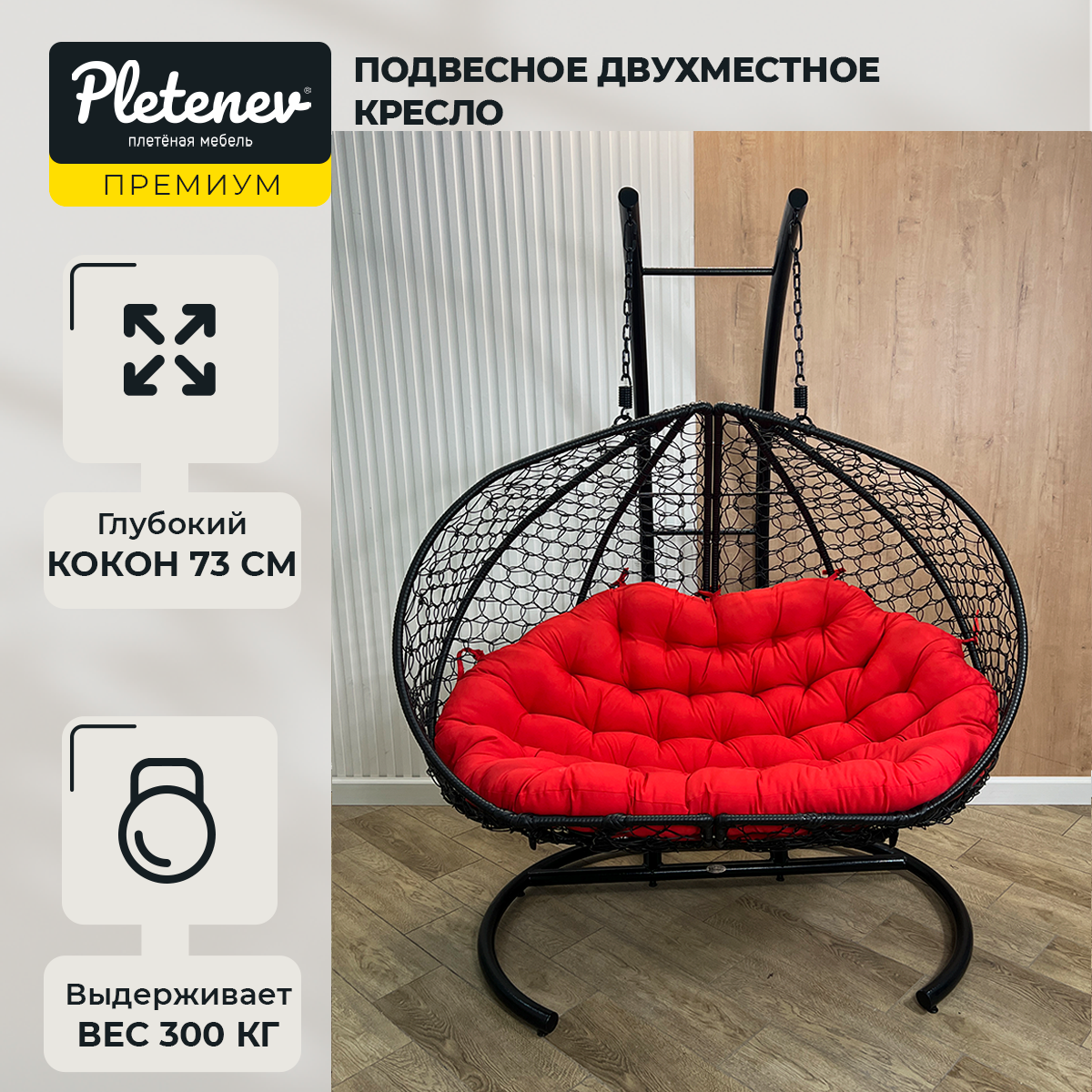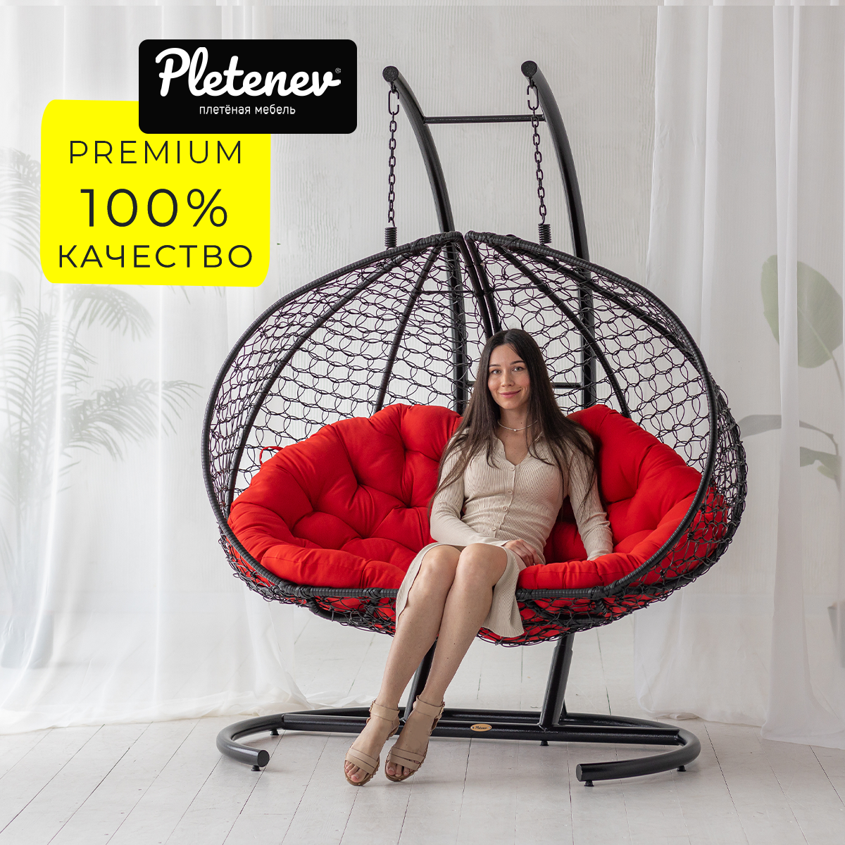 Купить Подвесное кресло Pletenev Двухместное чёрное с Красной подушкой