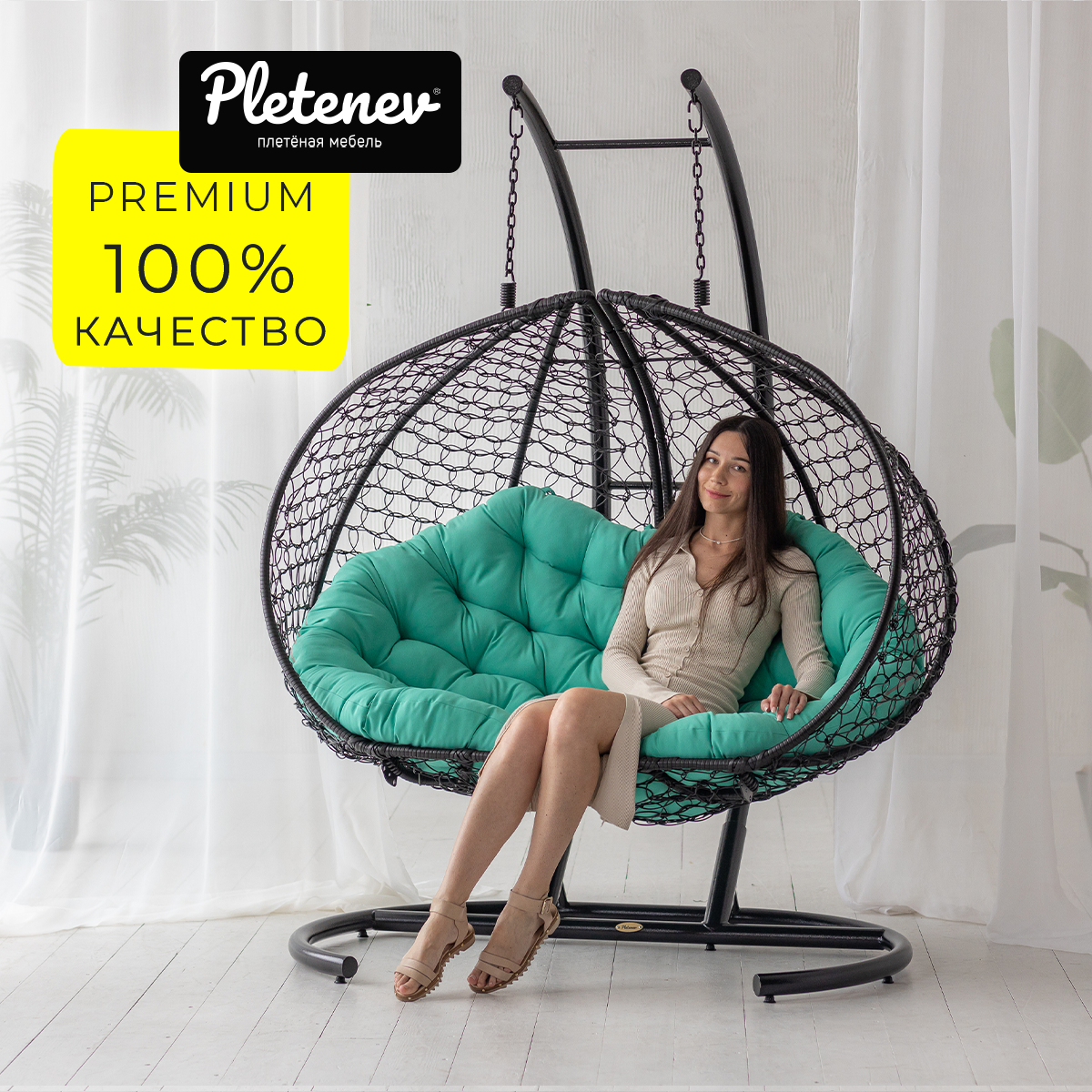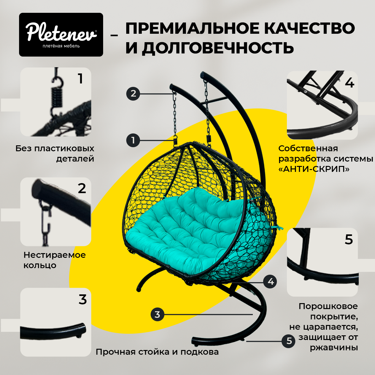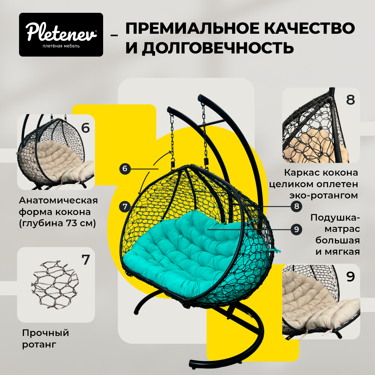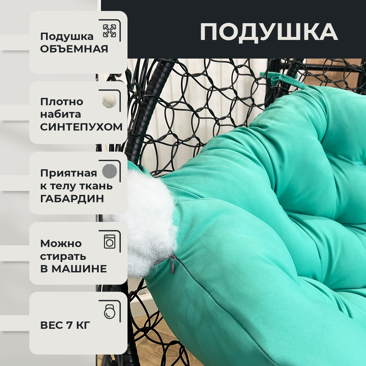 Купить Подвесное кресло Pletenev Двухместное чёрное с Мятной подушкой