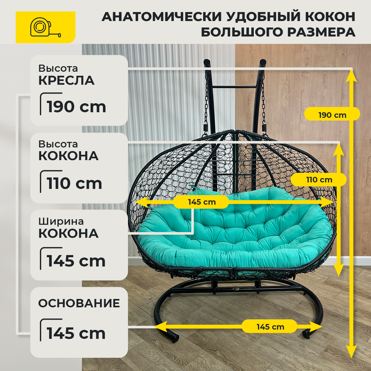 СохранитьПодвесное кресло Pletenev Двухместное чёрное с Мятной подушкой интересное:
