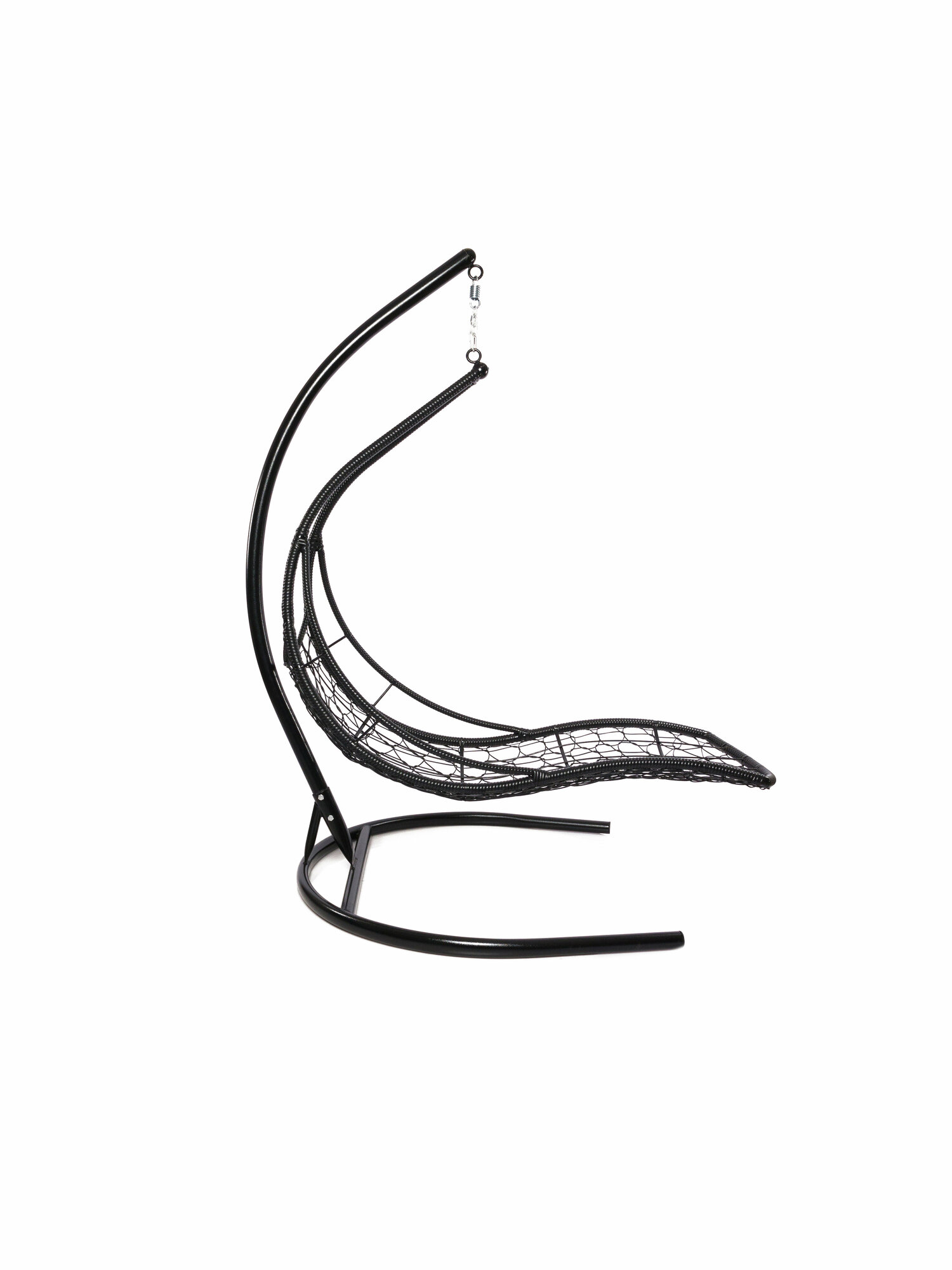 Подвесное кресло лежачее, с ротангом черное, серая подушка