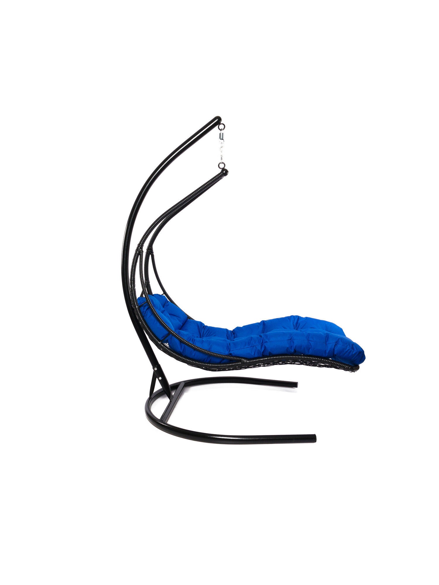Подвесное кресло лежачее, с ротангом черное, синяя подушка