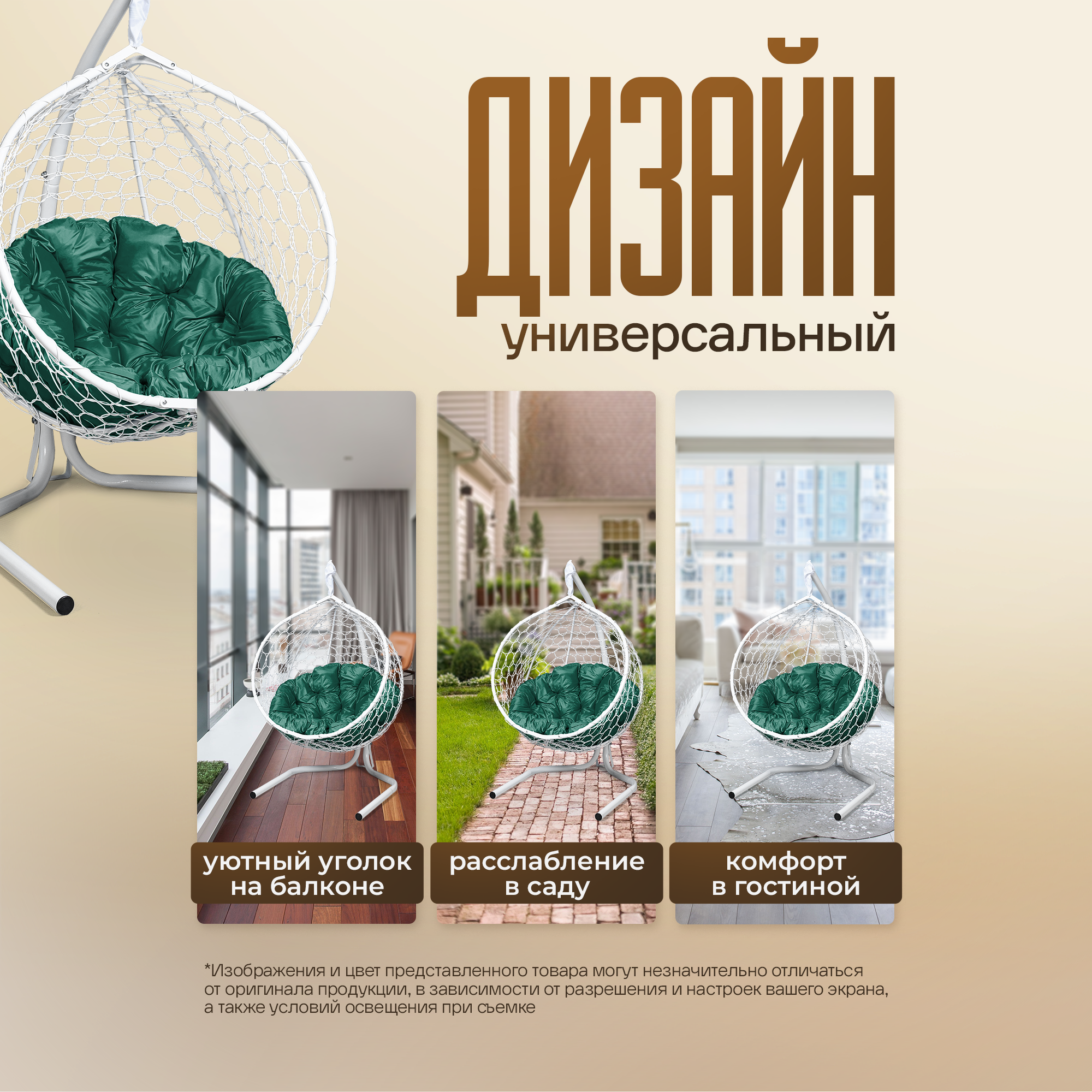 СохранитьКресло-кокон STULER Smile Белый с Зеленой круглой подушкой, 175 х 63 х 105 см для дачи и сада интересное: