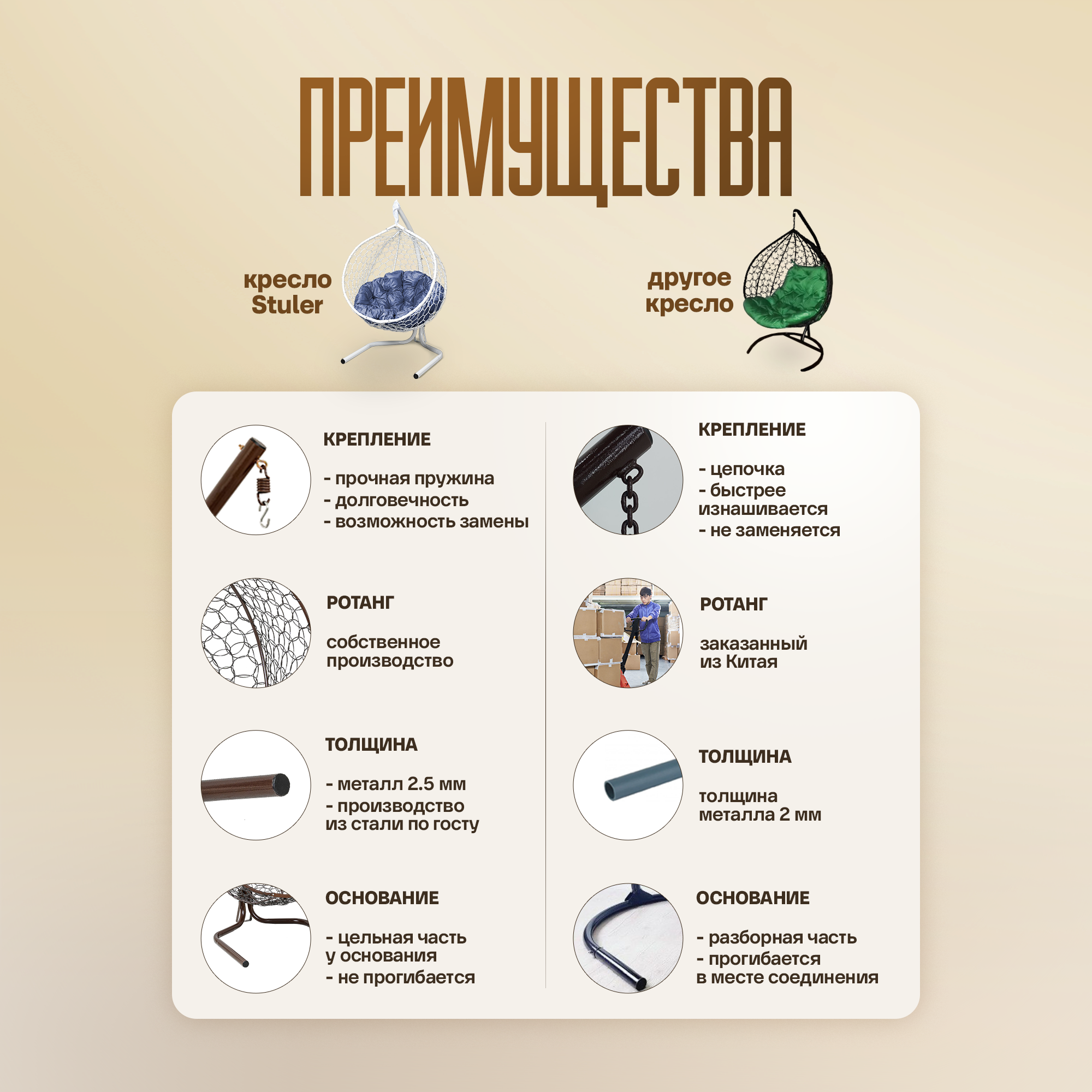 Кресло-кокон STULER Smile Белый с Коричневой круглой подушкой, 175 х 63 х 105 см для дачи и сада