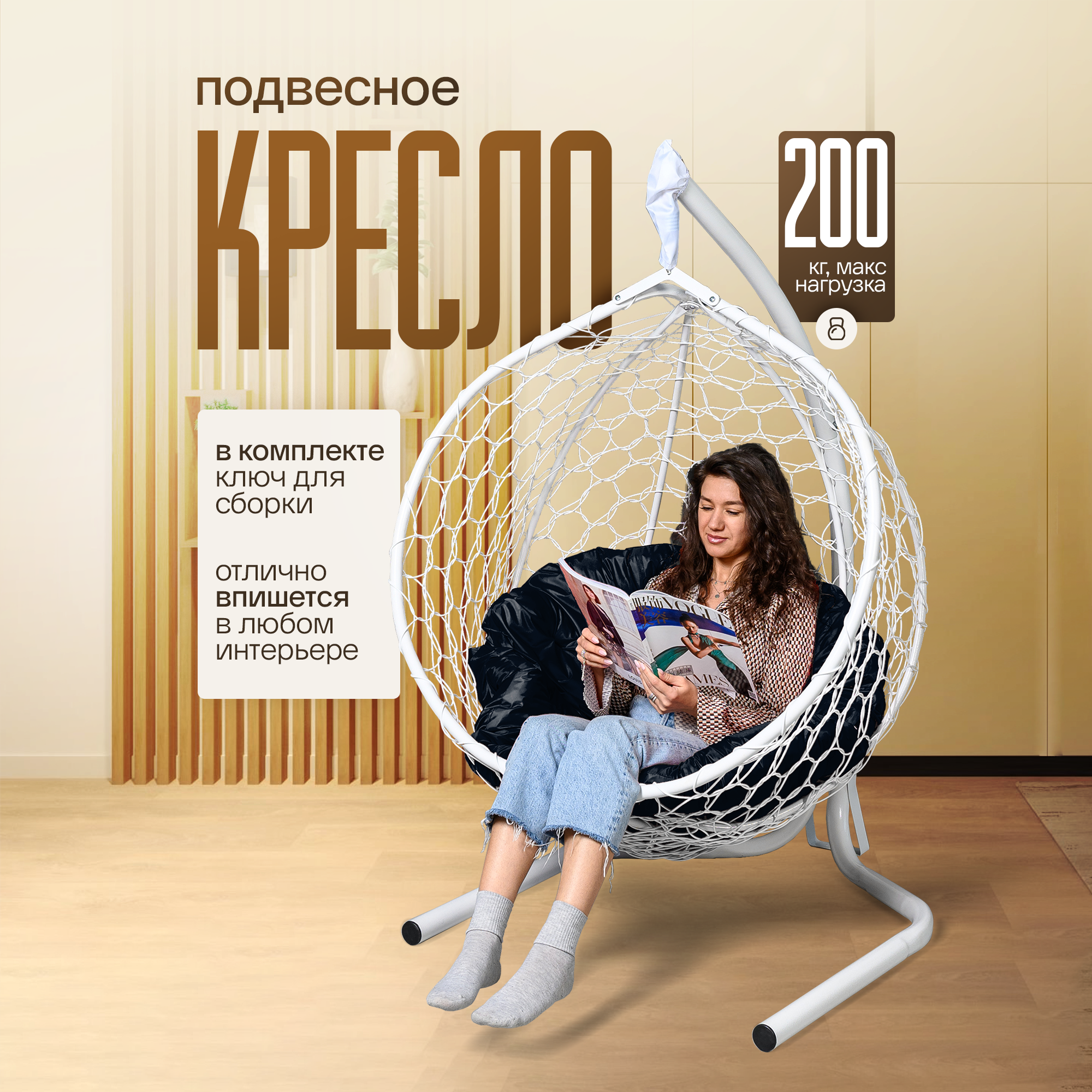 Купить Кресло-кокон STULER Smile Белый с Черной круглой подушкой, 175 х 63 х 105 см для дачи и сада