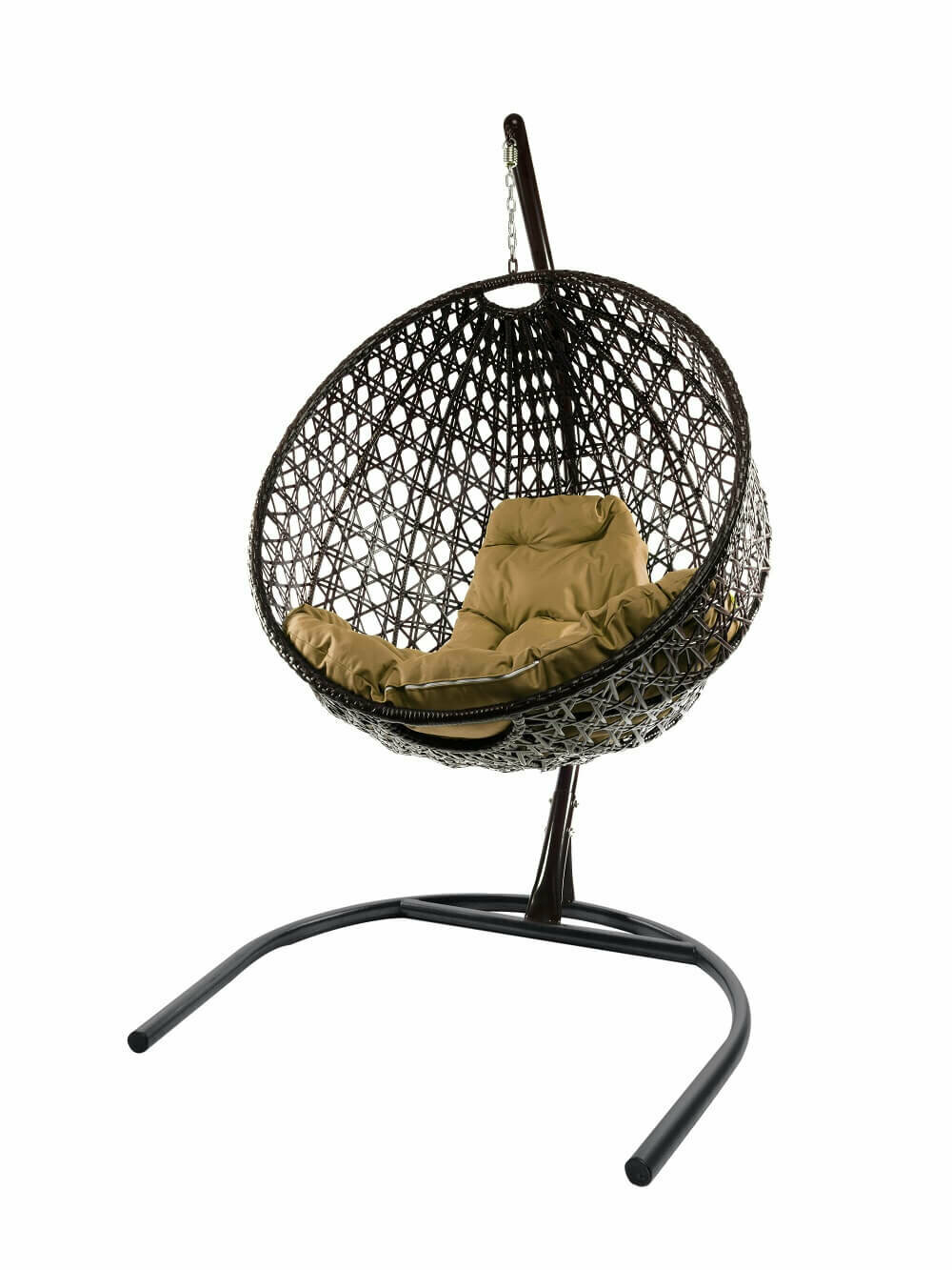 Подвесное кресло из ротанга "круг люкс" с ротангом коричневое, бежевая подушка