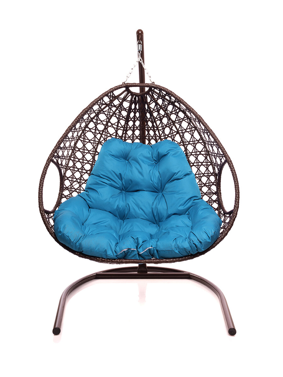 Купить Подвесное кресло M-group для двоих люкс с ротангом коричневое голубая подушка
