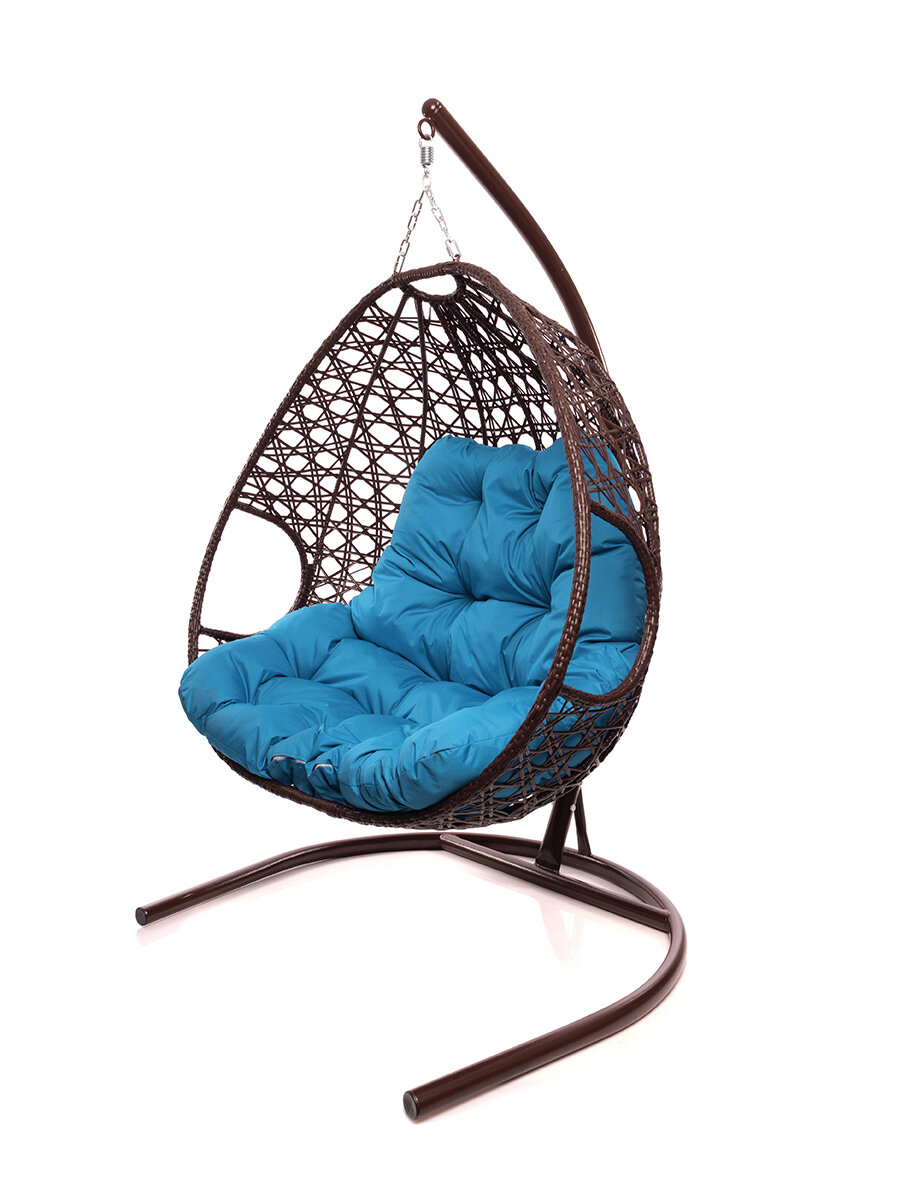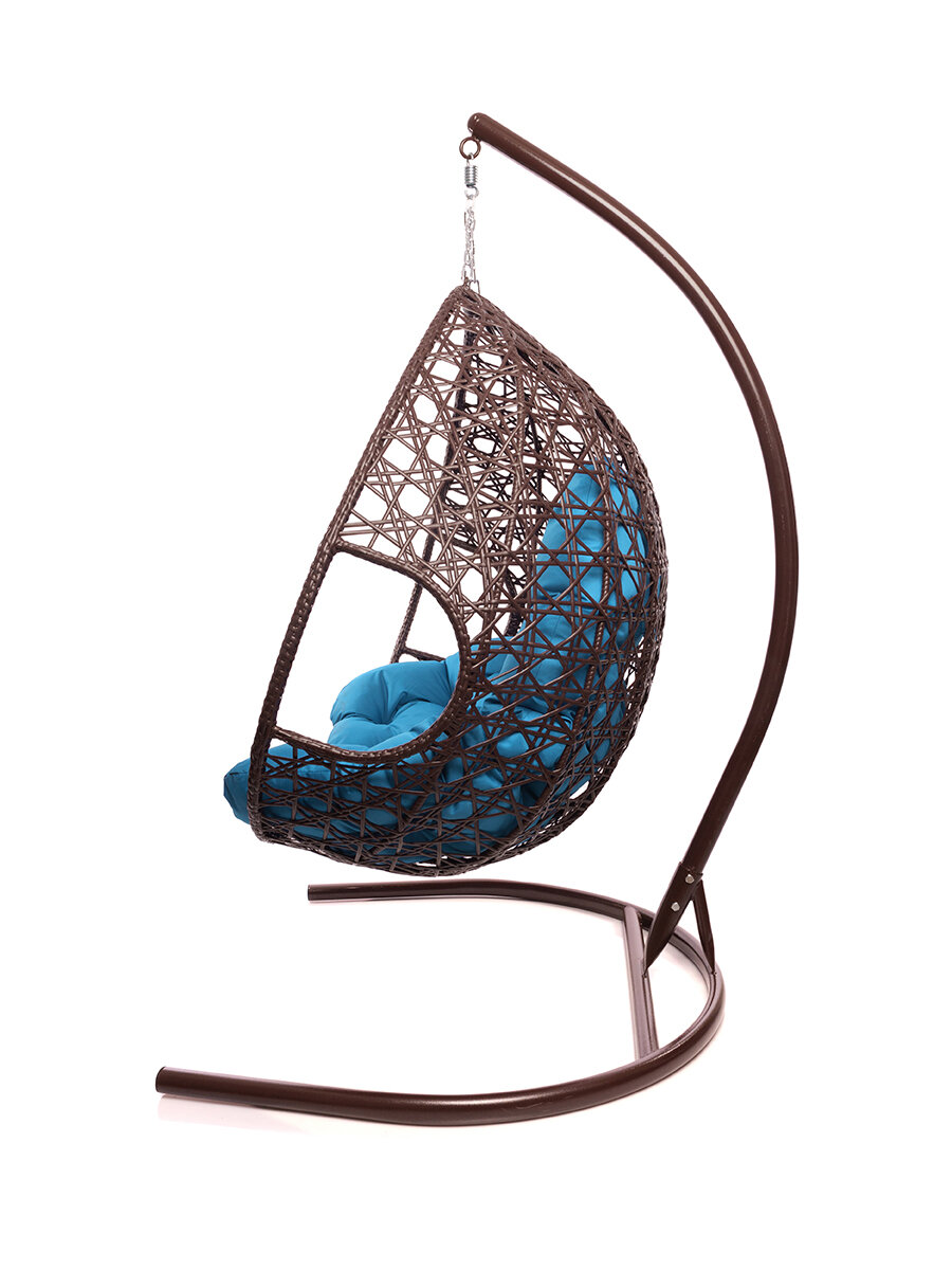 Подвесное кресло капля Люкс коричневое, голубая подушка