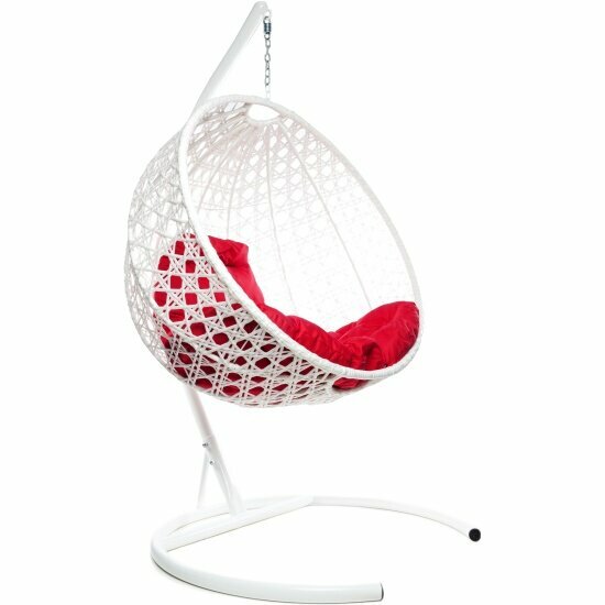 Кресло ... Кресло подвесное капля с ротангом белое красная подушка