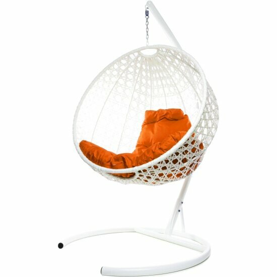 Купить Подвесное кресло кокон"круглый"люкс ротанг цвет: белый ; подушка: оранжевый