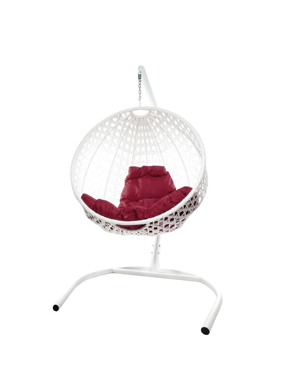 Подвесное кресло кокон"круглый"люкс ротанг цвет: белый ; подушка: бордо