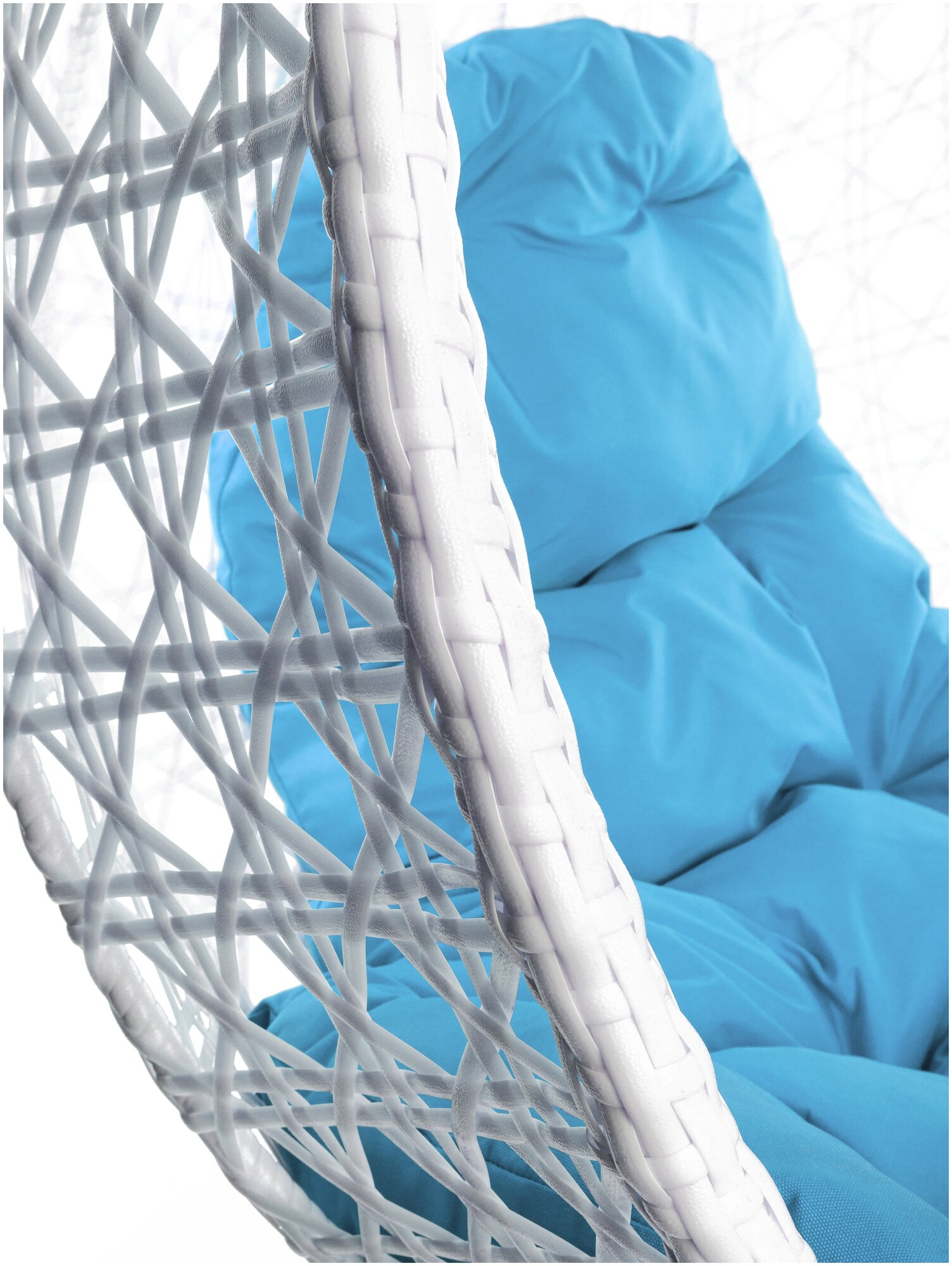 Купить Подвесное кресло M-group круг люкс с ротангом белое голубая подушка