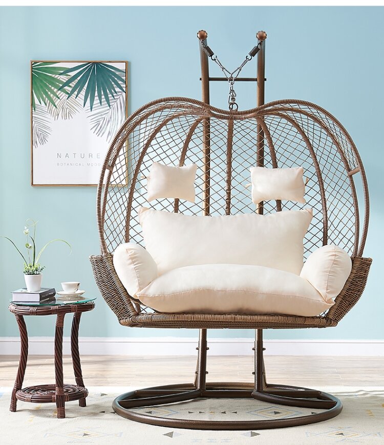 Подвесное кресло с ротангом Для компании серое, бордовая подушка
