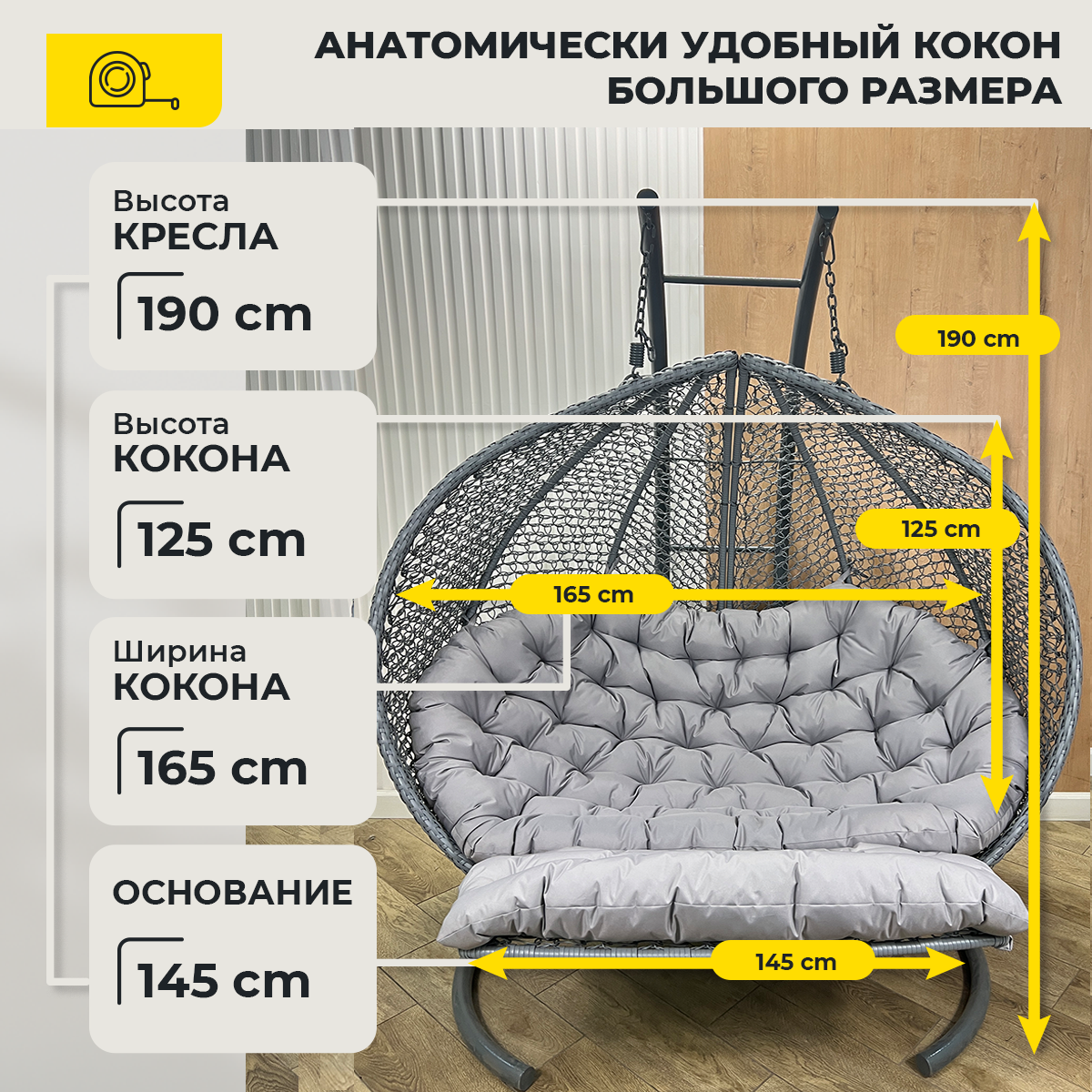 | Комплектация | Разборный кокон, подушка, дуга от стойки, основание стойки, система подвеса, винтовые ножки |