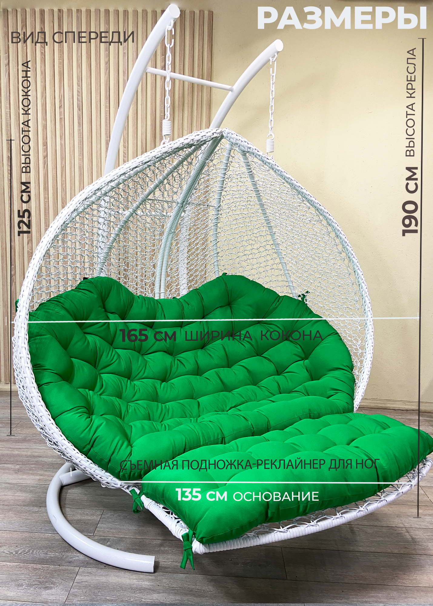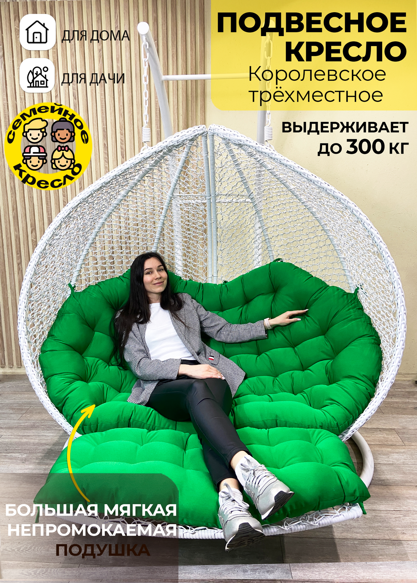 Подвесное кресло Queen трехместное Белое с Зеленой водоотталкивающей подушкой