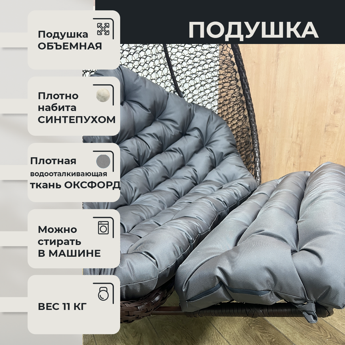 Подвесное кресло Queen трехместное Серое со Светло-серой водоотталкивающей подушкой