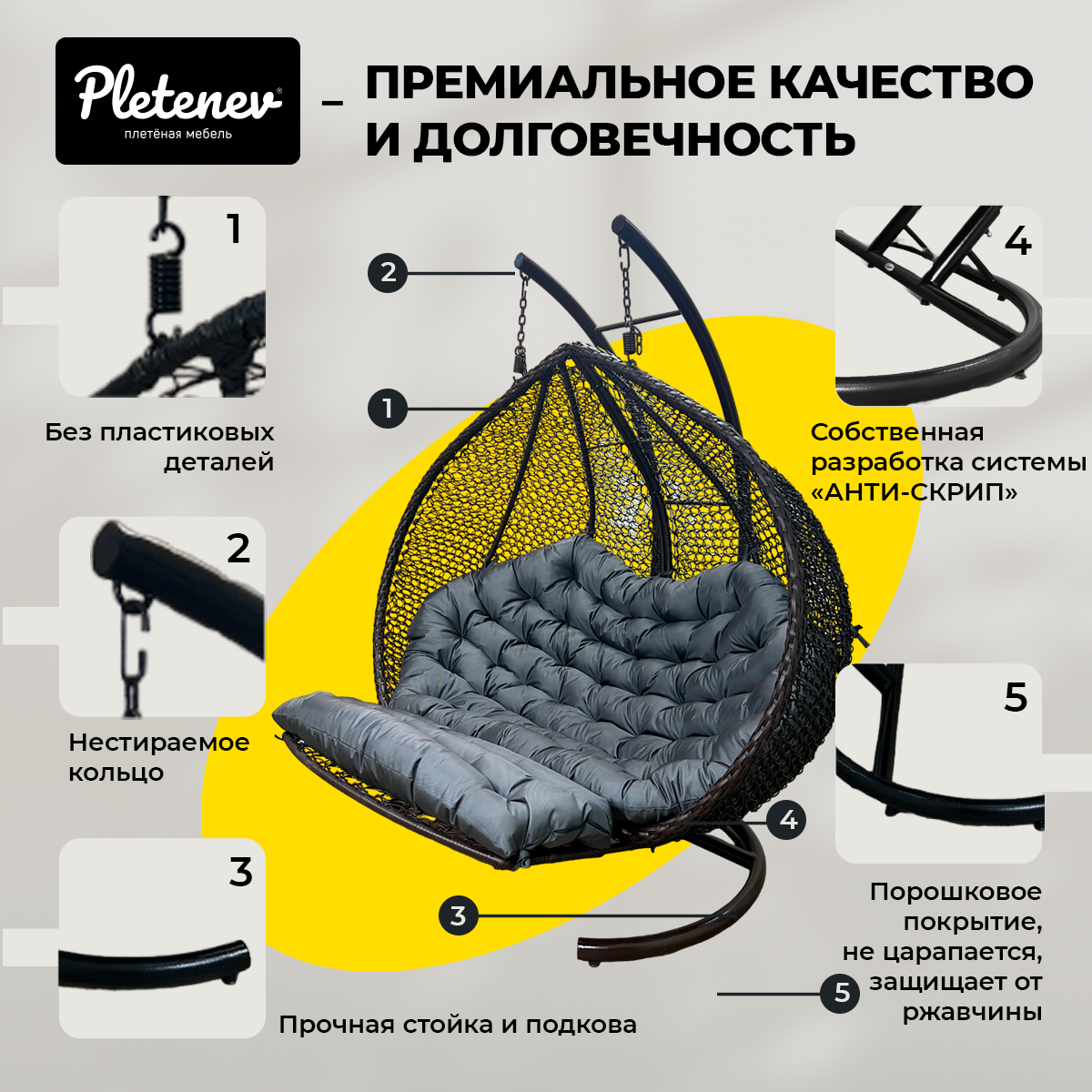 Подвесное кресло-кокон Pletenev "Капля Стандарт" 18-602