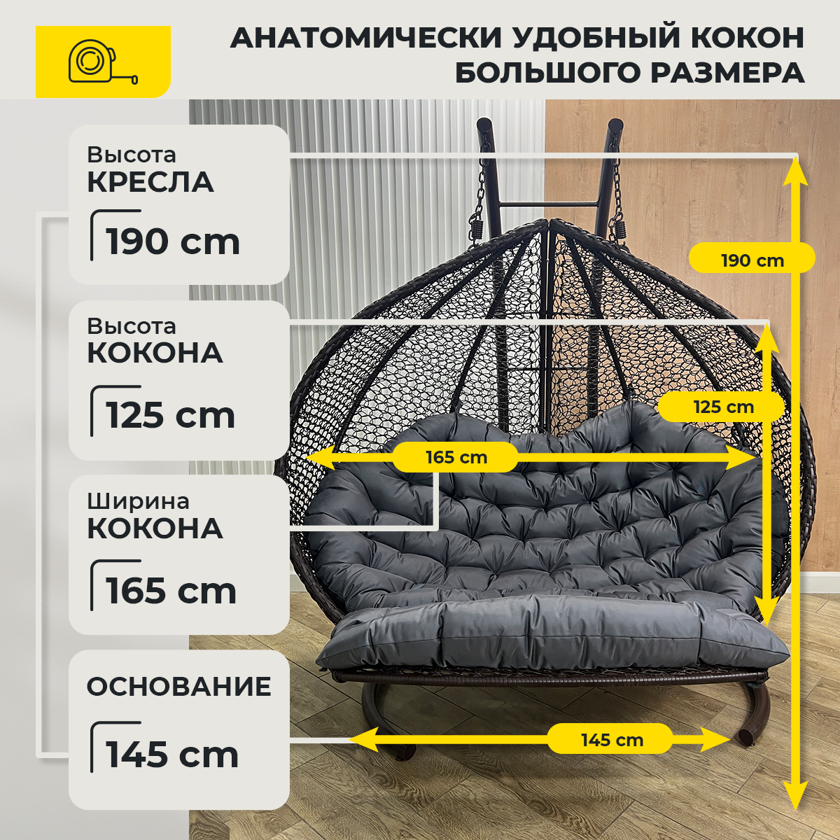 Подвесное кресло Queen трехместное Черное с Коричневой водоотталкивающей подушкой