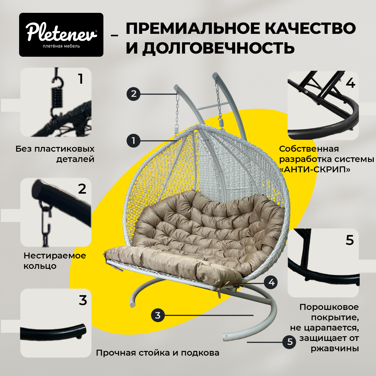 Подвесное кресло-кокон Pletenev "Капля Стандарт" 18-602