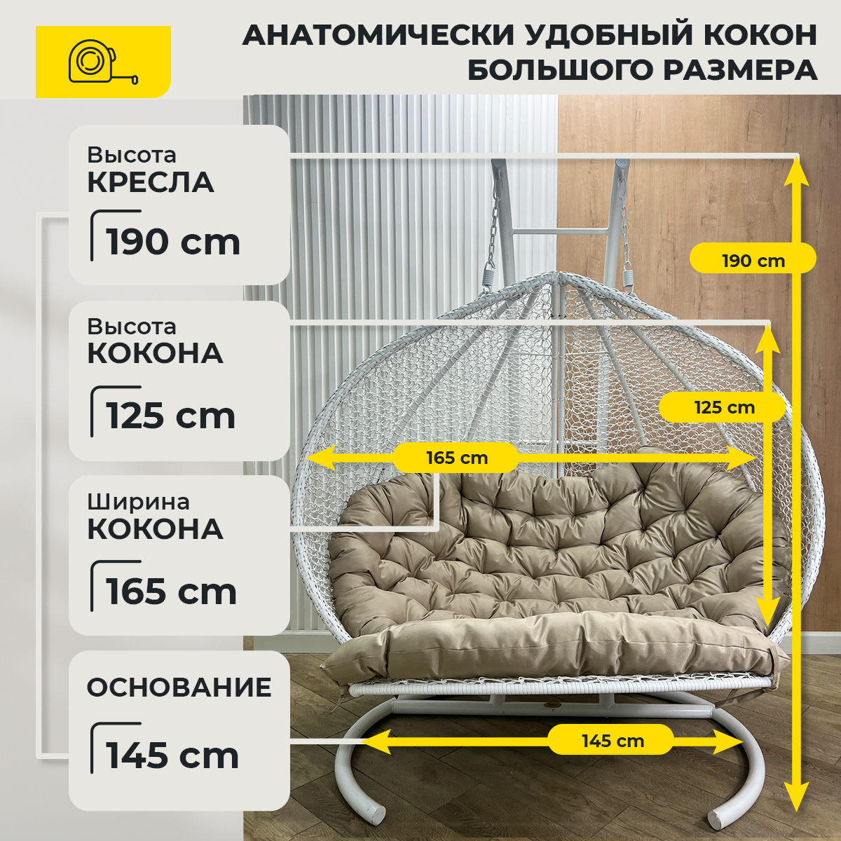 Подвесное кресло Queen трехместное Белое с Бежевой водоотталкивающей подушкой