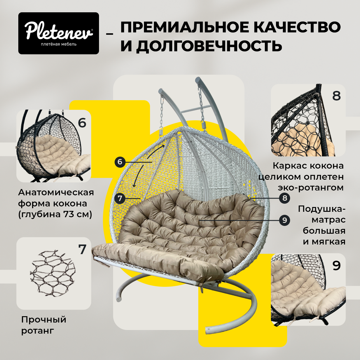 Подвесное кресло-кокон Pletenev "Капля Стандарт" 26-513
