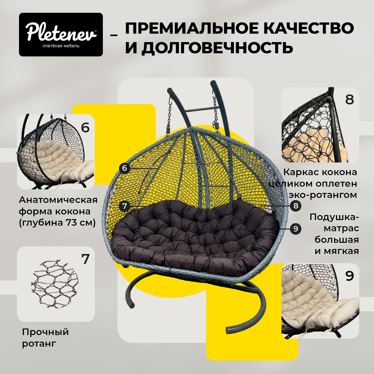СохранитьПодвесное кресло Queen трехместное Серое с Коричневой водоотталкивающей подушкой интересное: