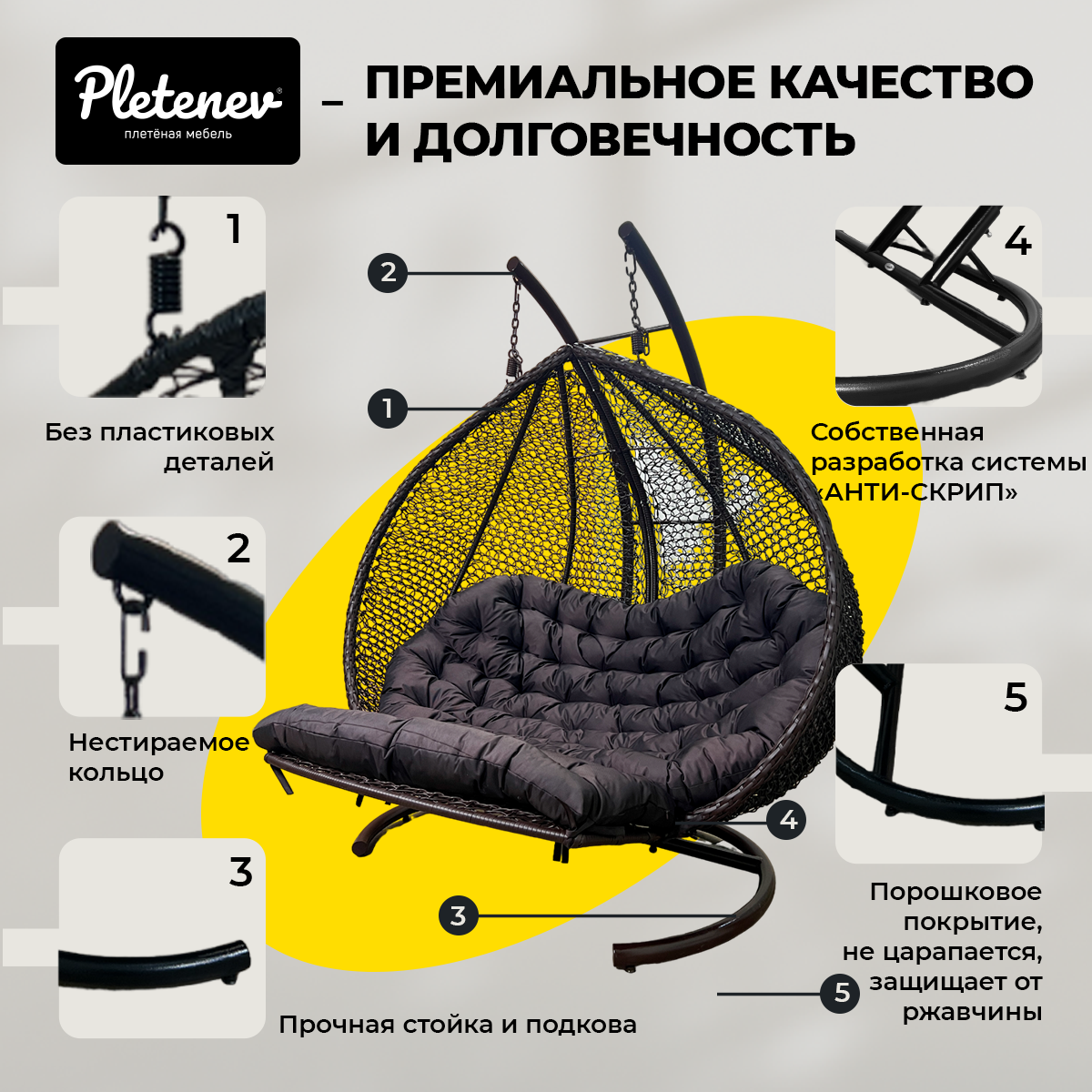 Подвесное кресло-кокон Pletenev "Капля Стандарт" 18-602