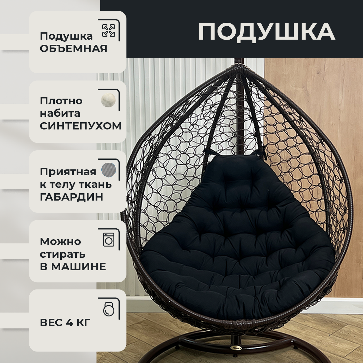 Подвесное кресло Queen трехместное Черное с Коричневой водоотталкивающей подушкой