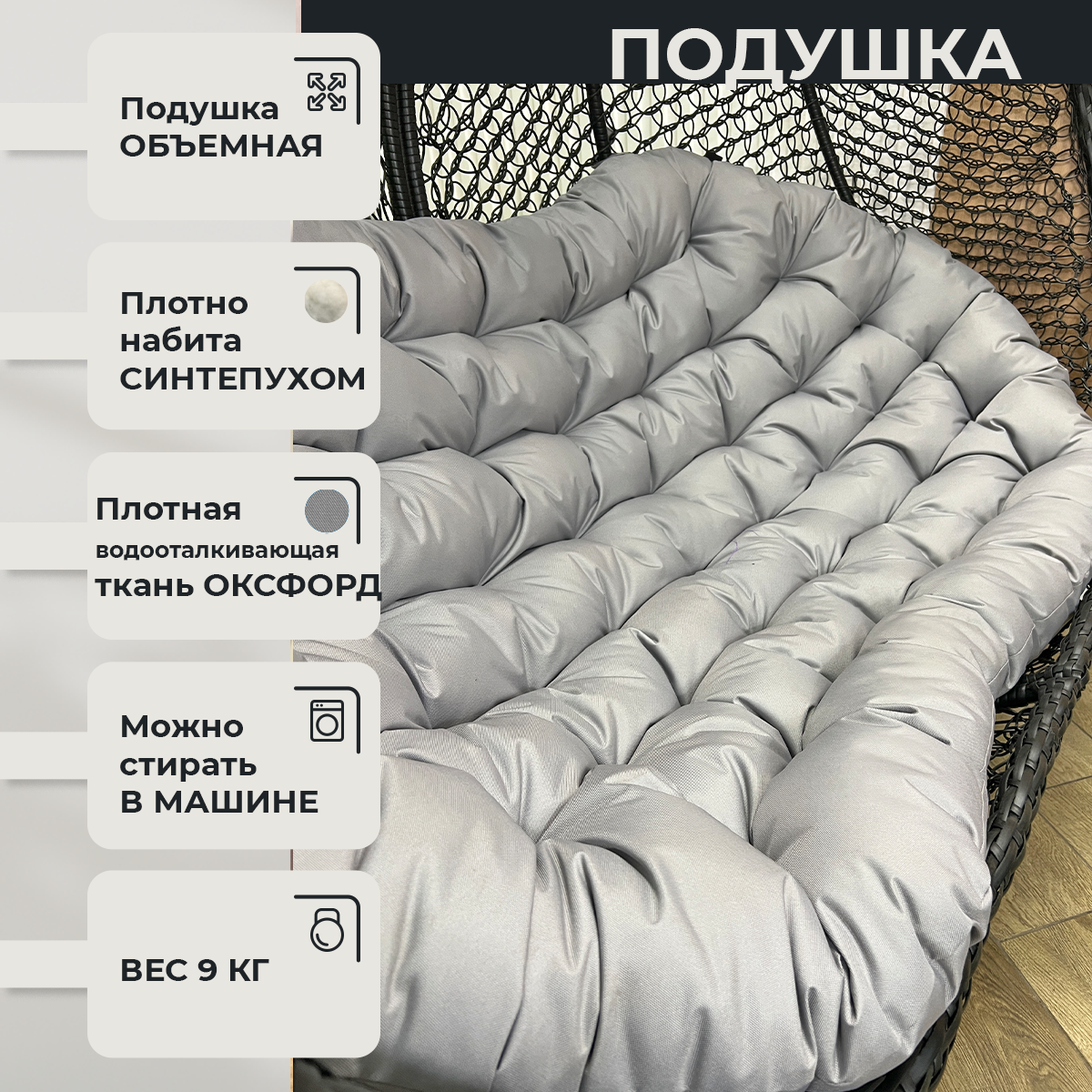 Купить Подвесное кресло Queen трехместное Черное со Светло-серой водоотталкивающей подушкой