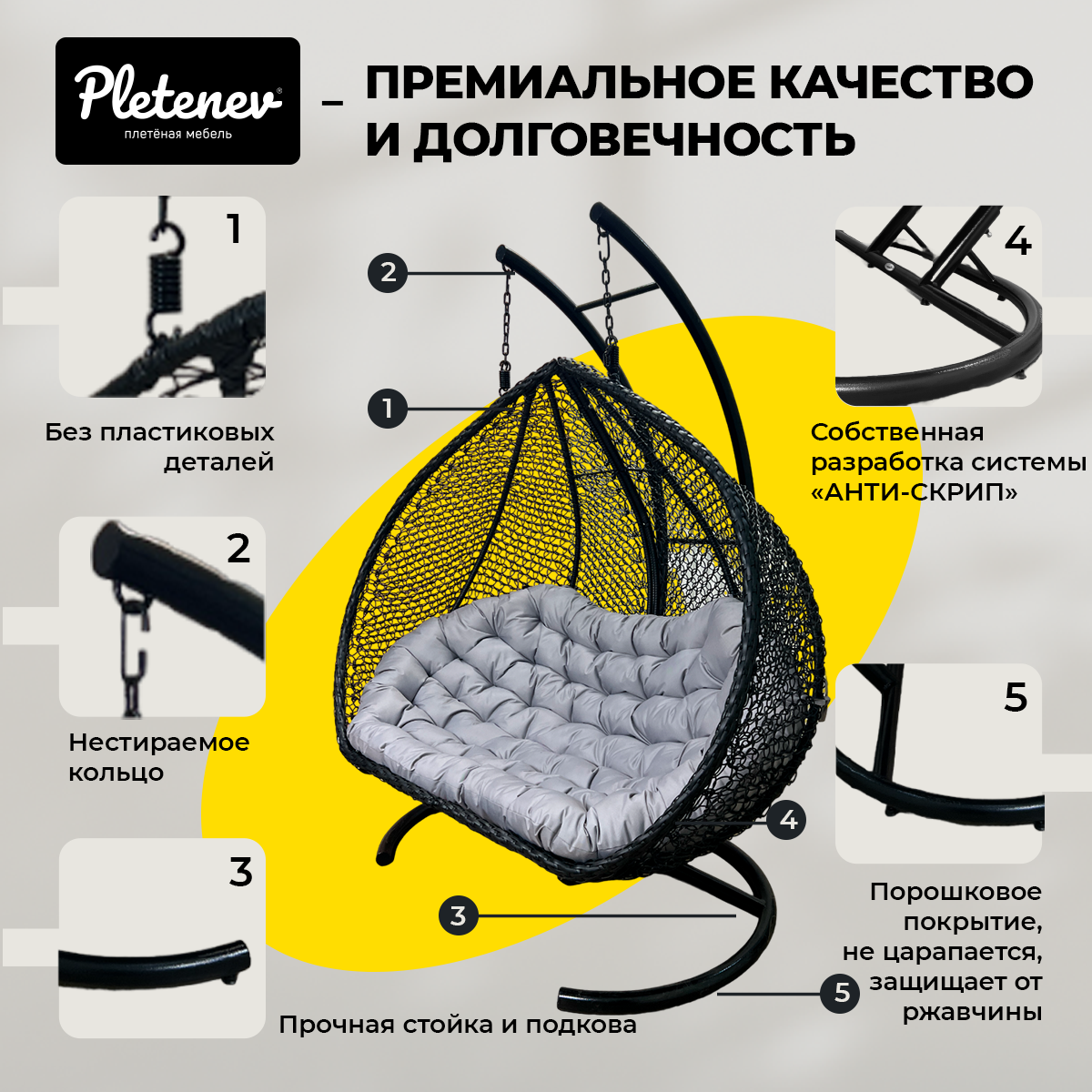 СохранитьПодвесное кресло Queen трехместное Черное со Светло-серой водоотталкивающей подушкой интересное: