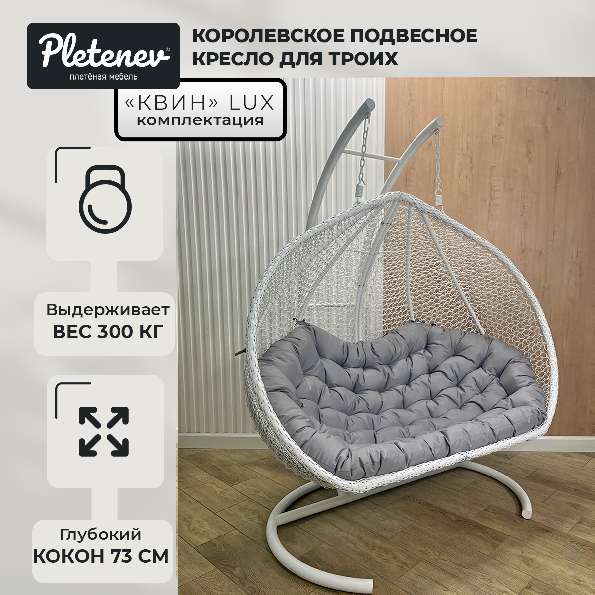 Купить Подвесное кресло Queen трехместное Белое со Светло-серой водоотталкивающей подушкой