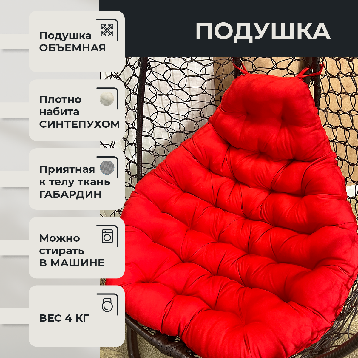 Кресло ... Кресло подвесное капля с ротангом белое красная подушка