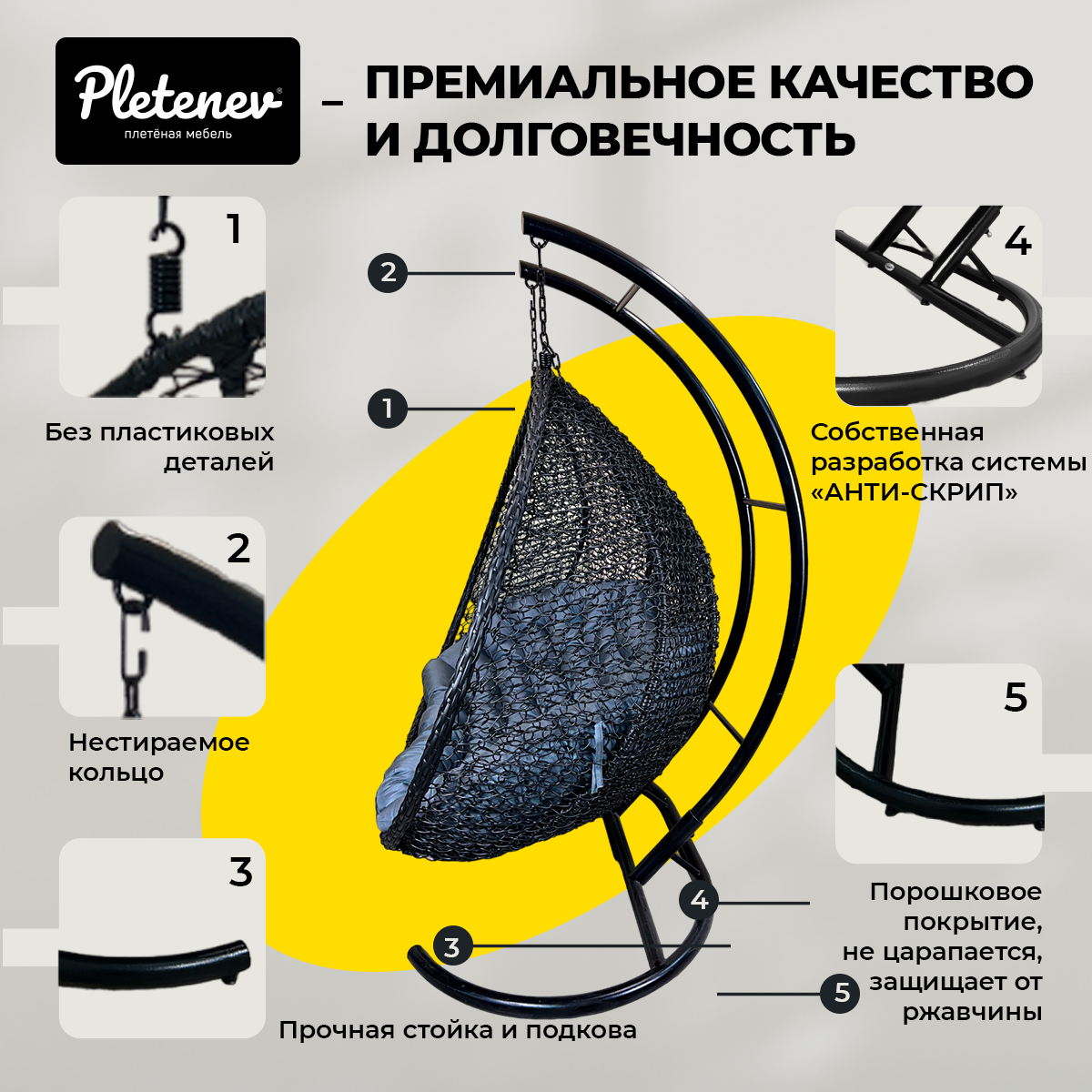 Подвесное кресло-кокон Pletenev "Капля Стандарт" 18-602