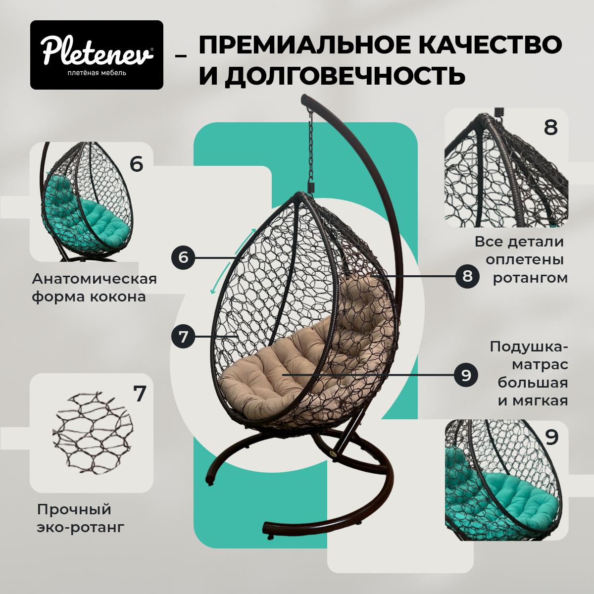 СохранитьПодвесное кресло-кокон Pletenev "Капля Стандарт" 26-513 интересное: