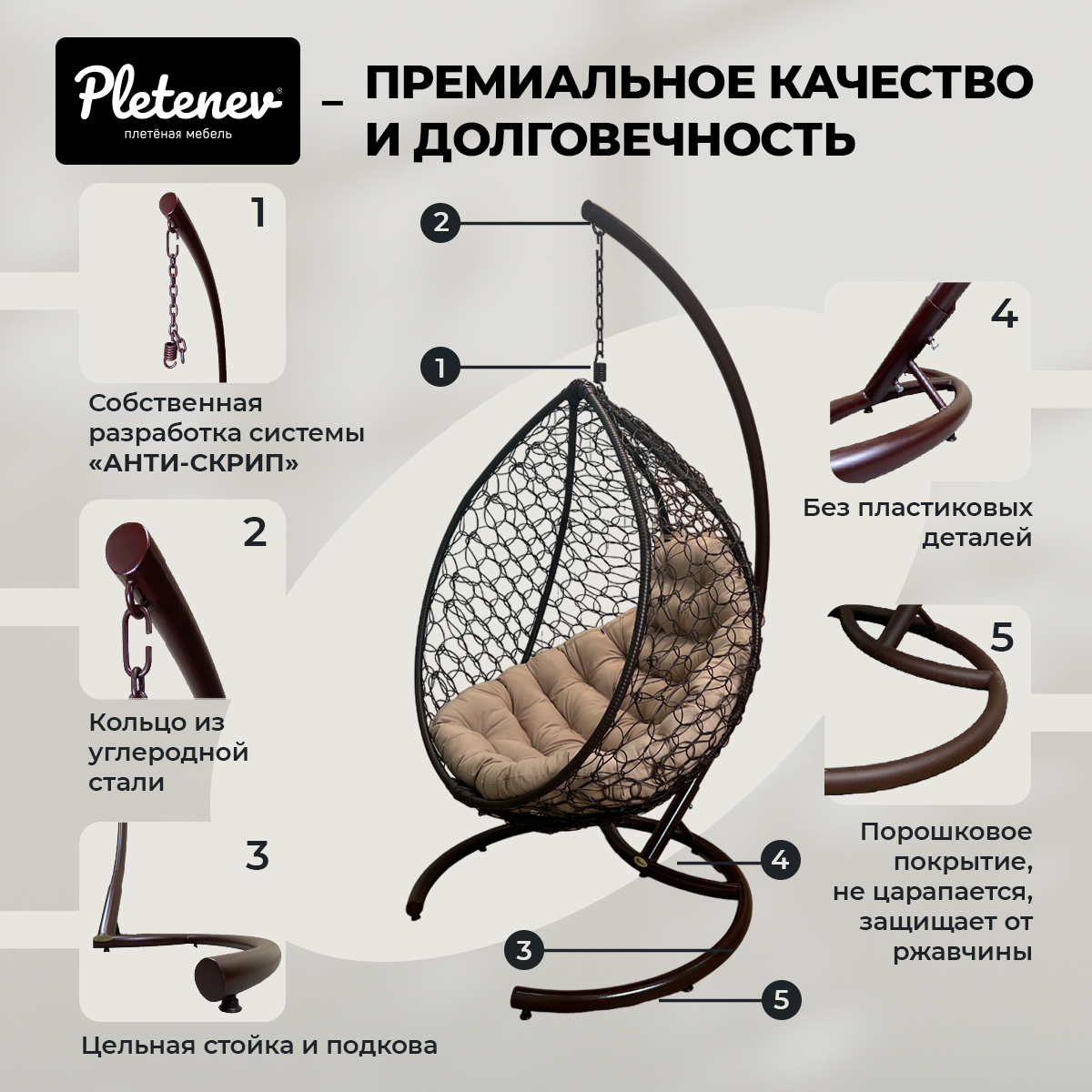 Подвесное кресло-кокон Pletenev "Капля Стандарт" 18-602