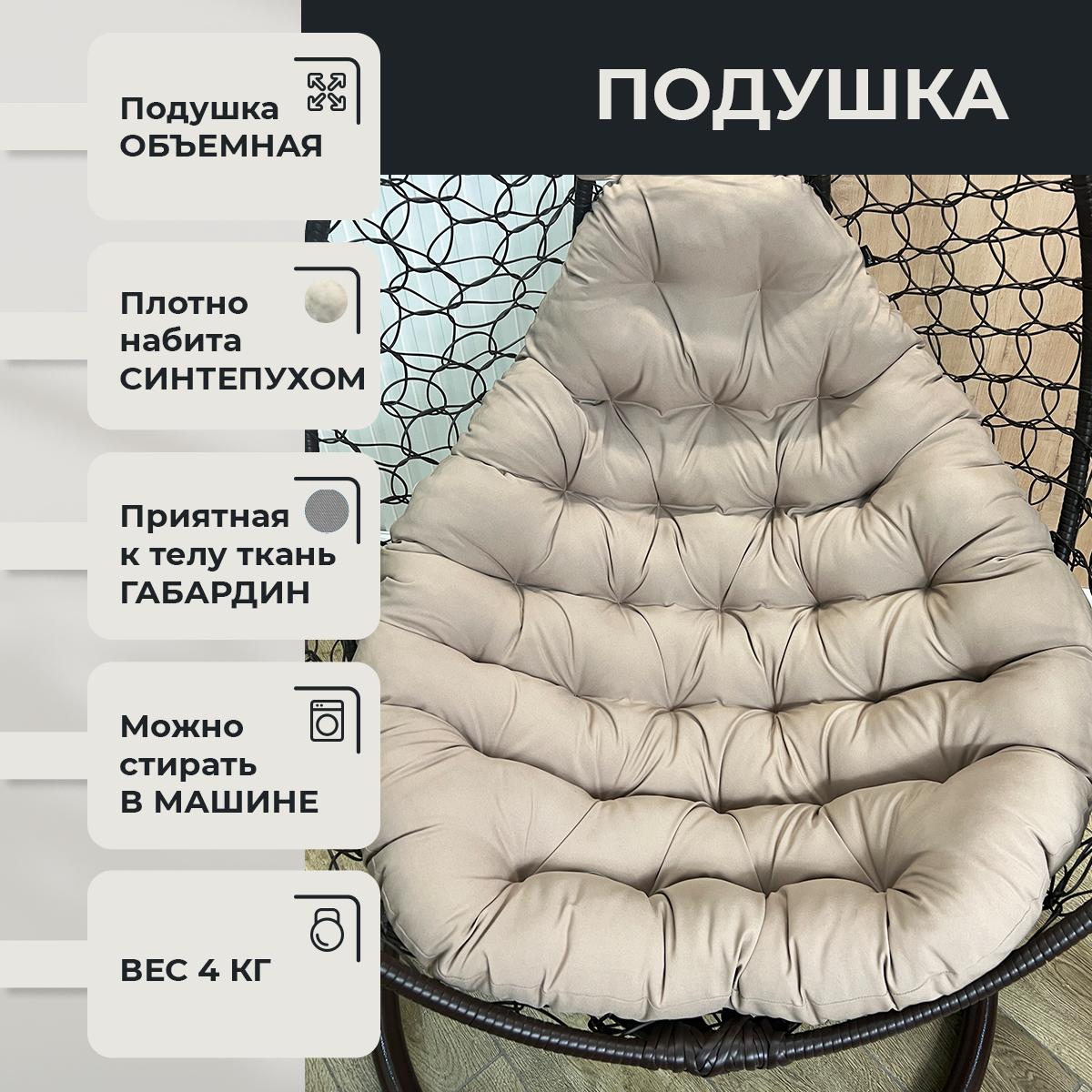 | Комплектация | Разборный кокон, подушка, дуга от стойки, основание стойки, система подвеса, винтовые ножки |