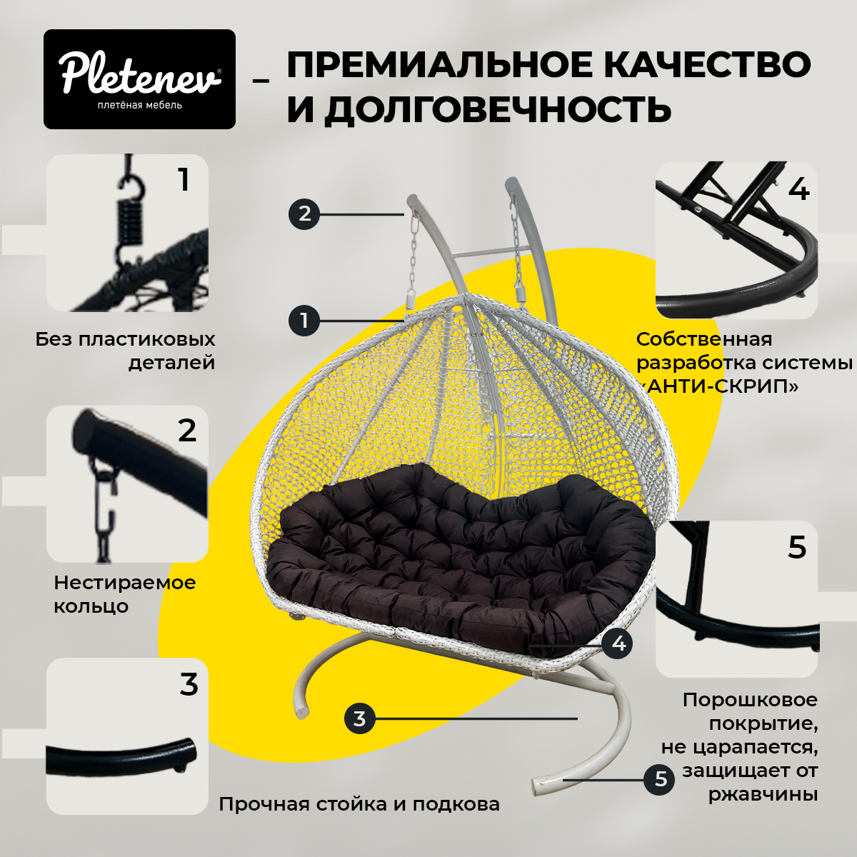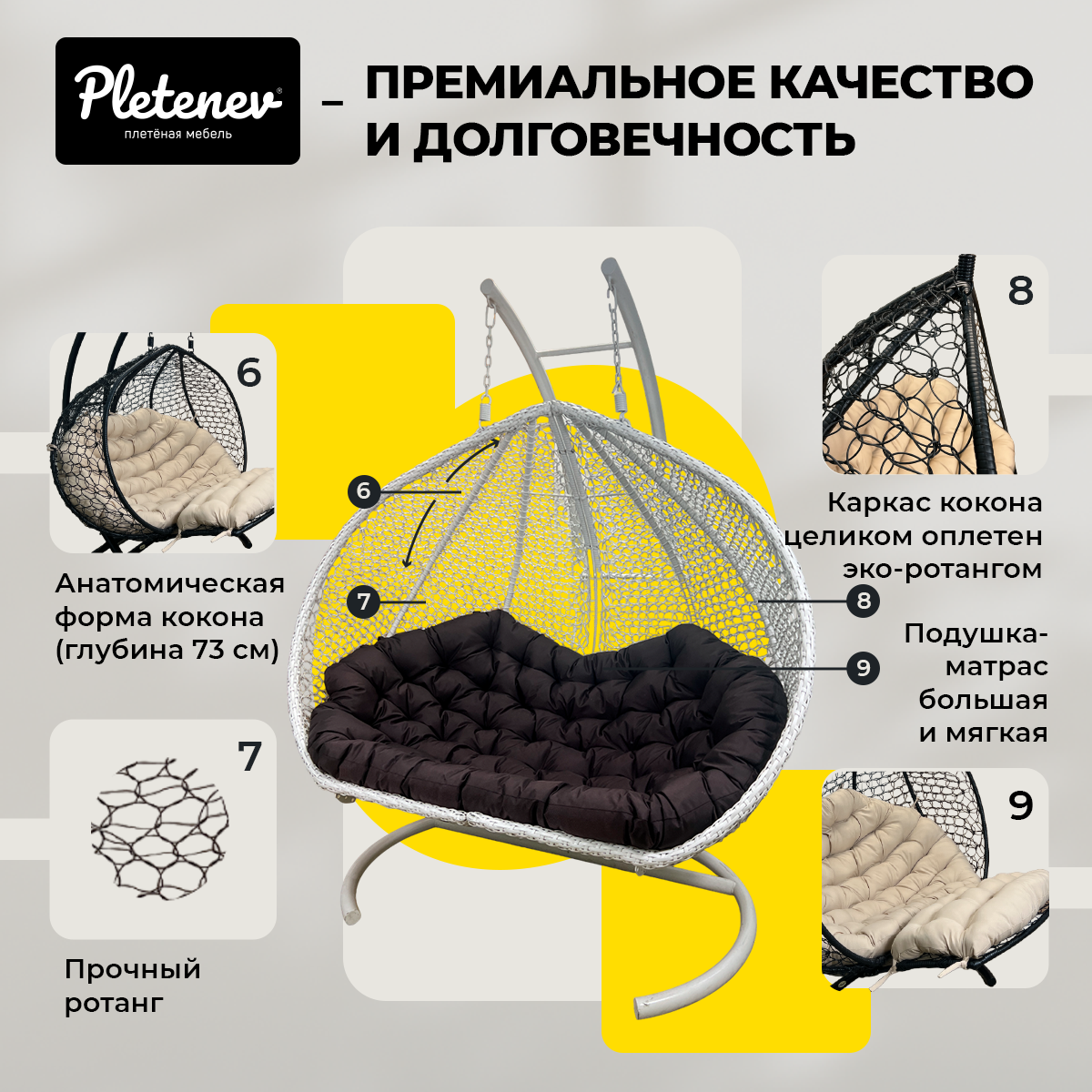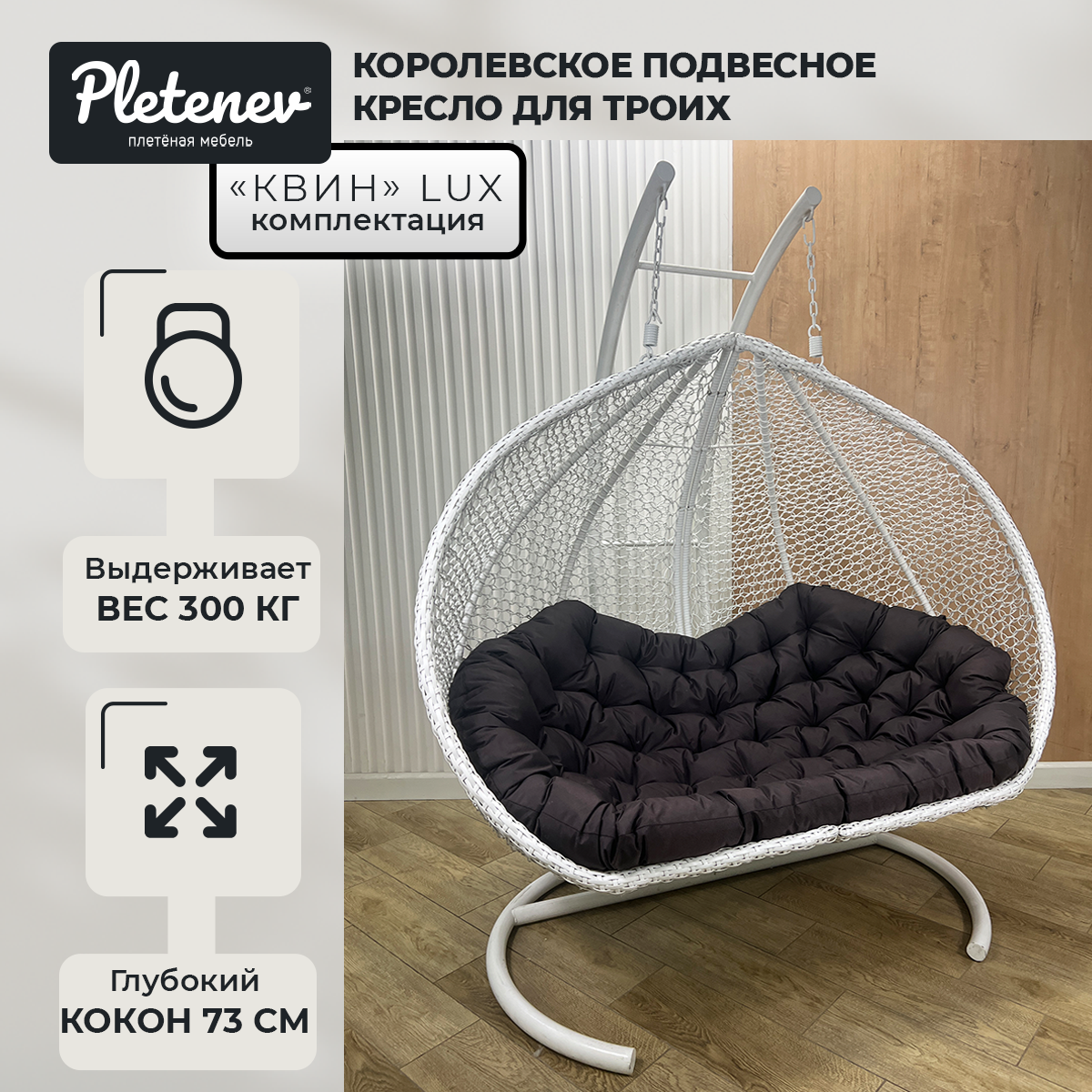 СохранитьПодвесное кресло Queen трехместное Белое с Коричневой водоотталкивающей подушкой интересное: