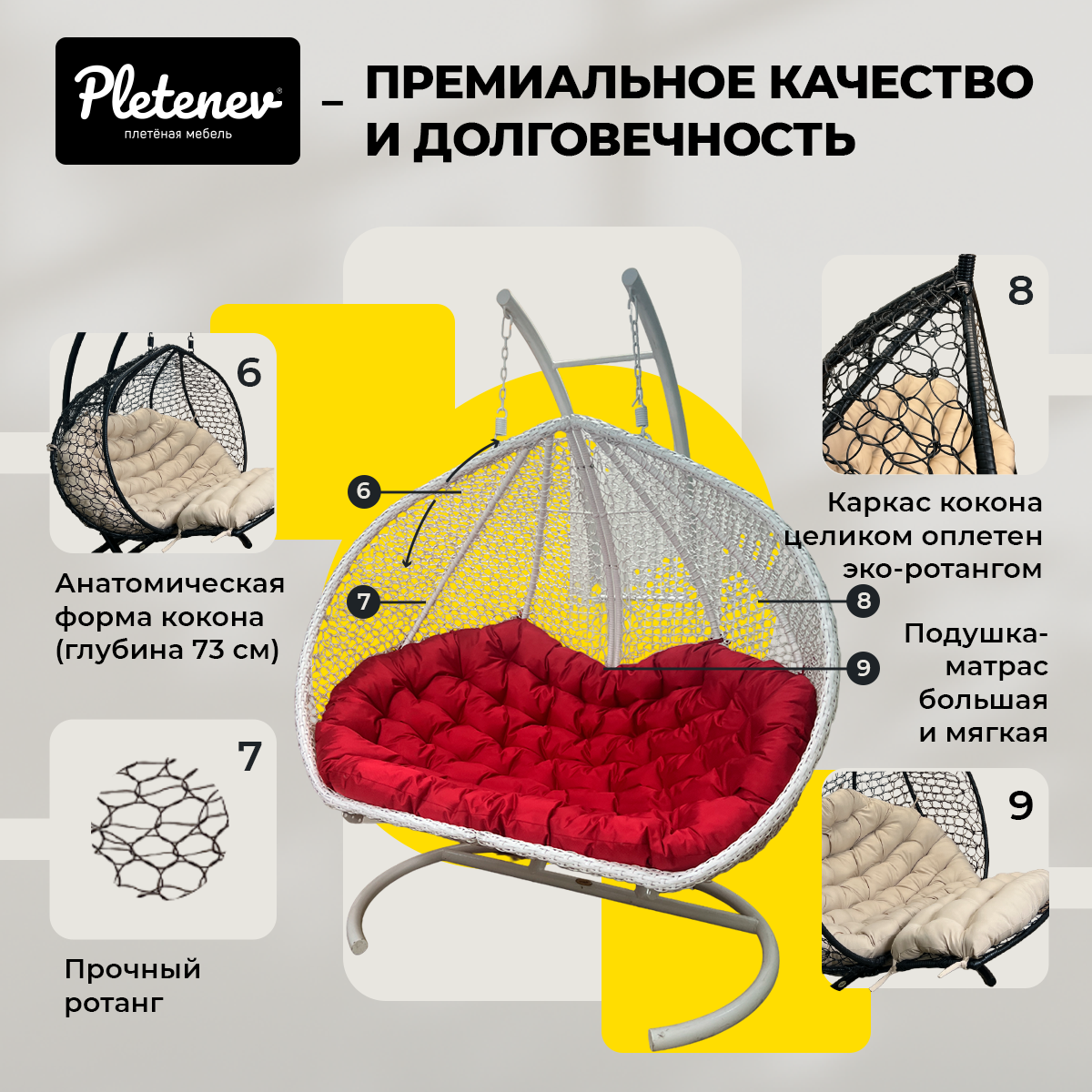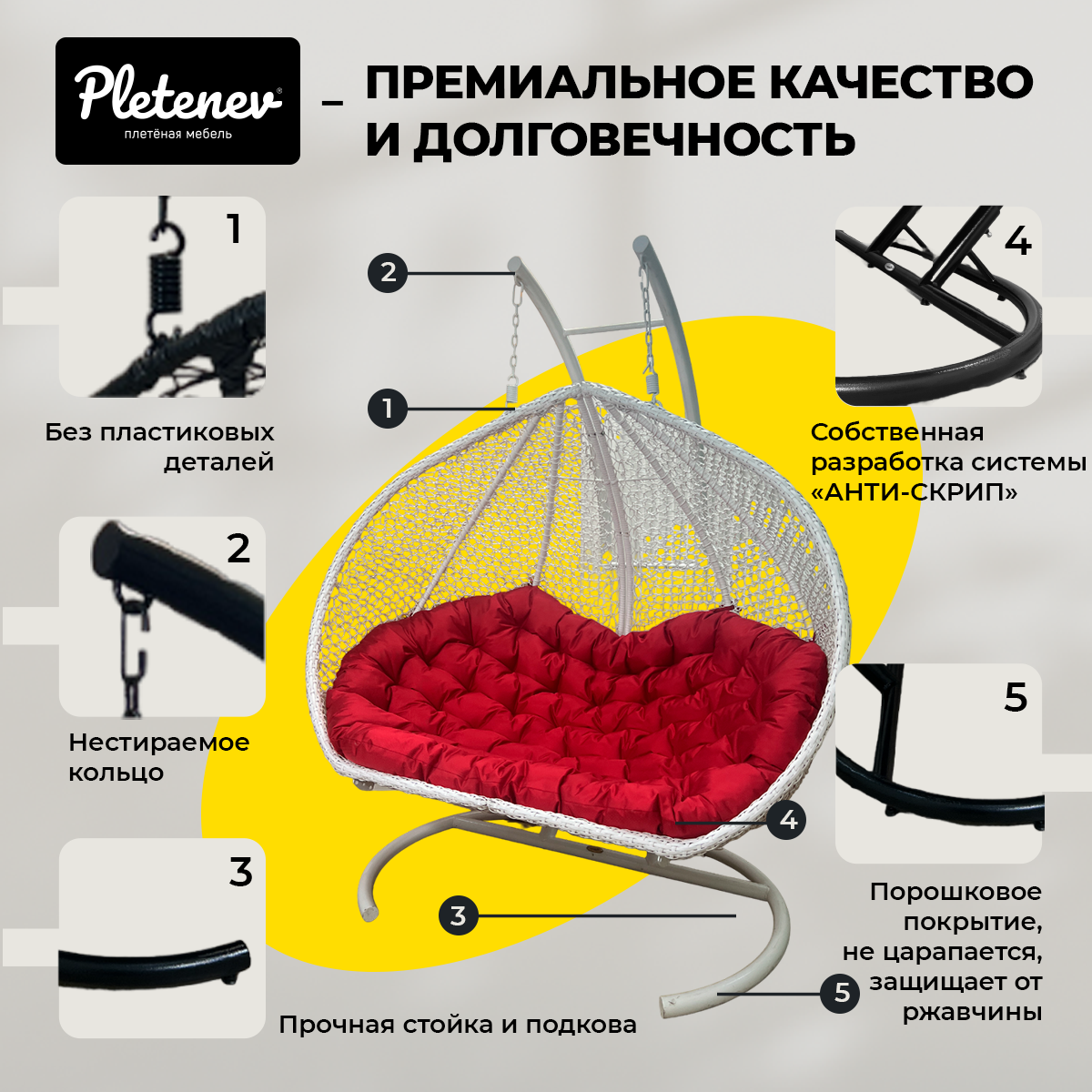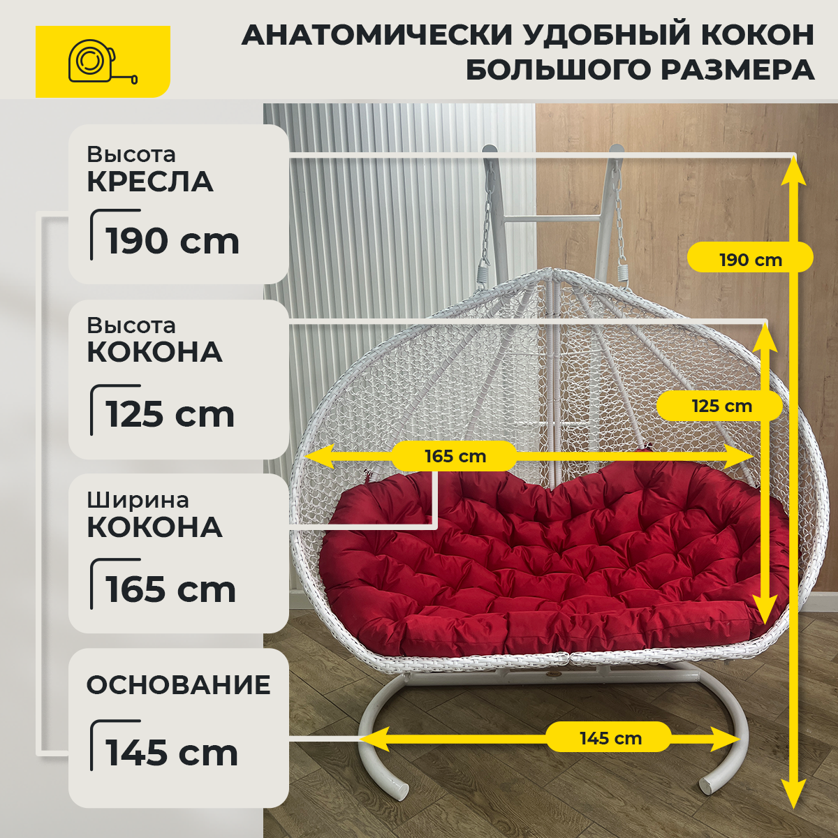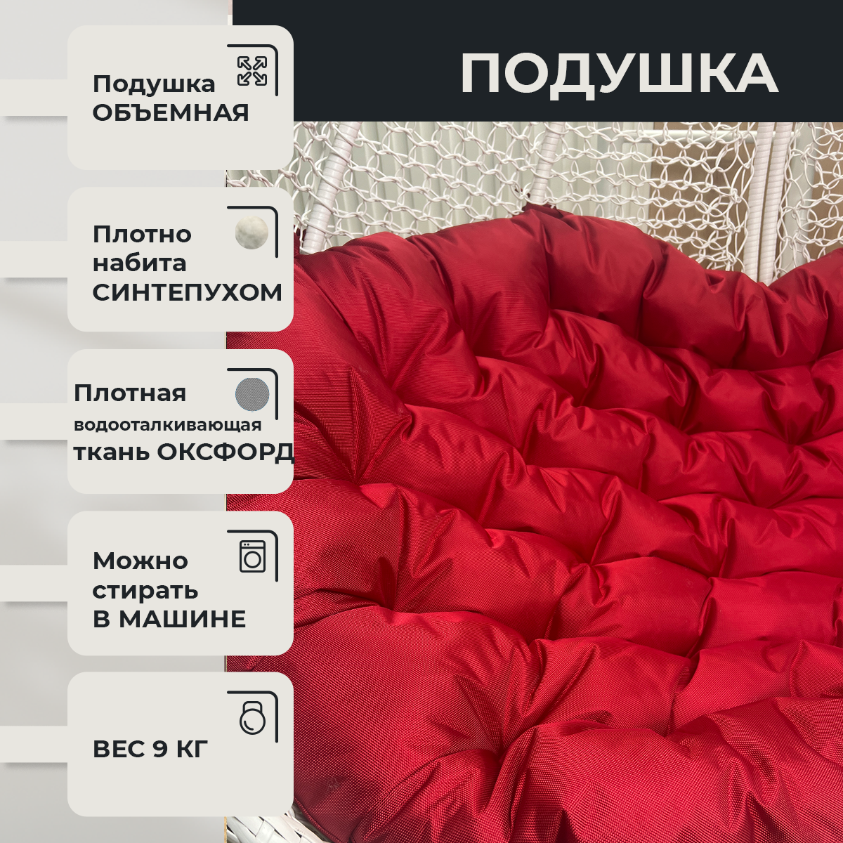 СохранитьПодвесное кресло Queen трехместное Белое с Красной водоотталкивающей подушкой интересное: