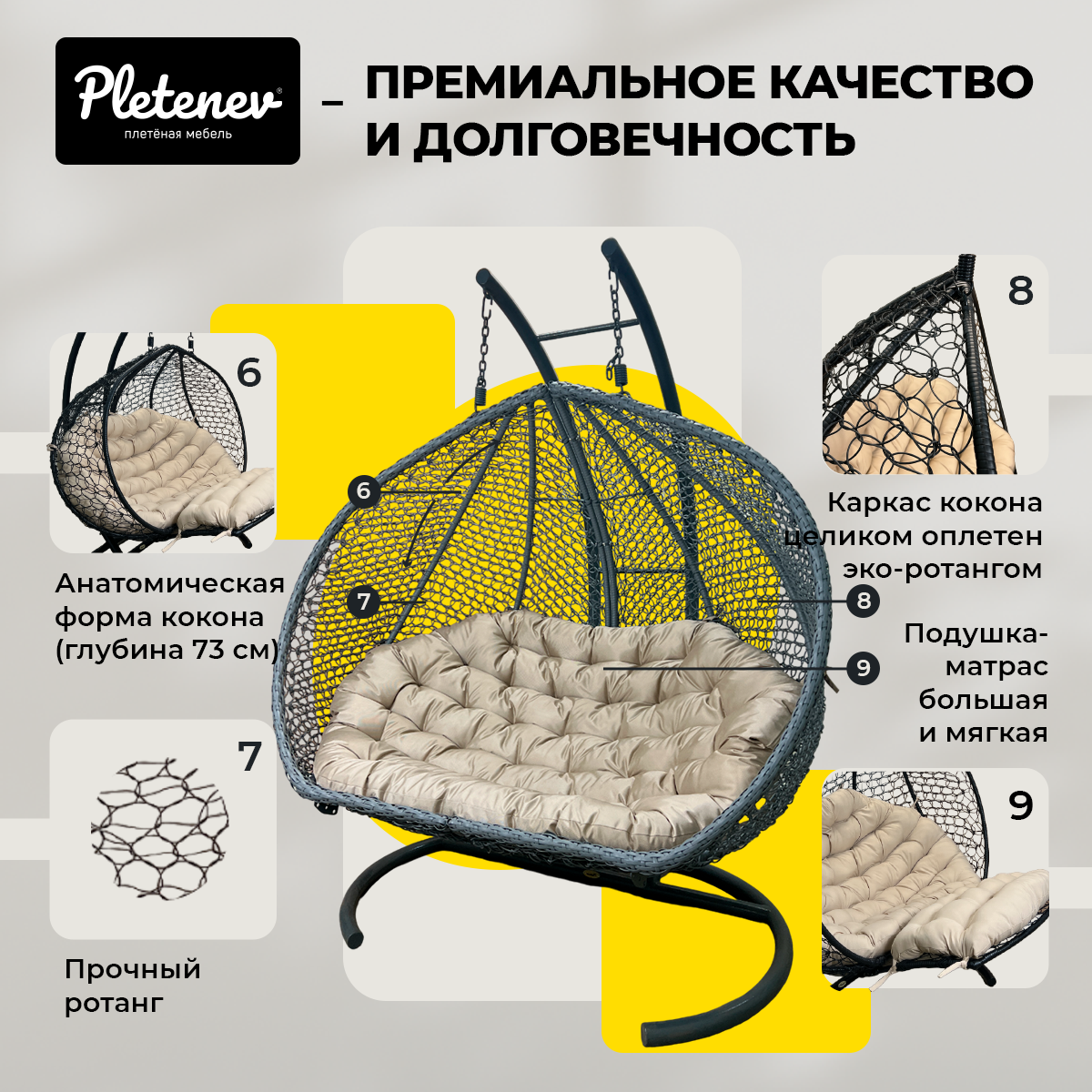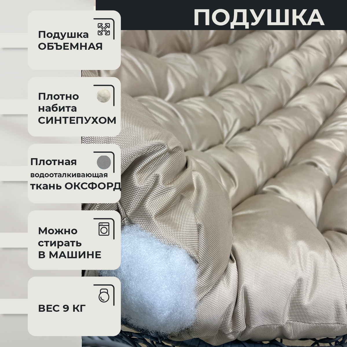 СохранитьПодвесное кресло Queen трехместное Серое с Темно-бежевой водоотталкивающей подушкой интересное: