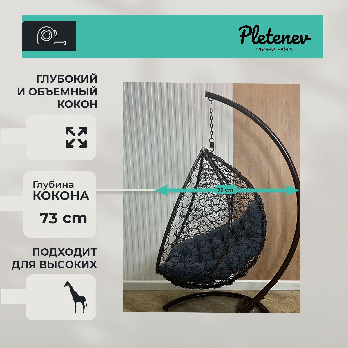 СохранитьПодвесное кресло-кокон Pletenev "Капля Стандарт" 29-814 интересное: