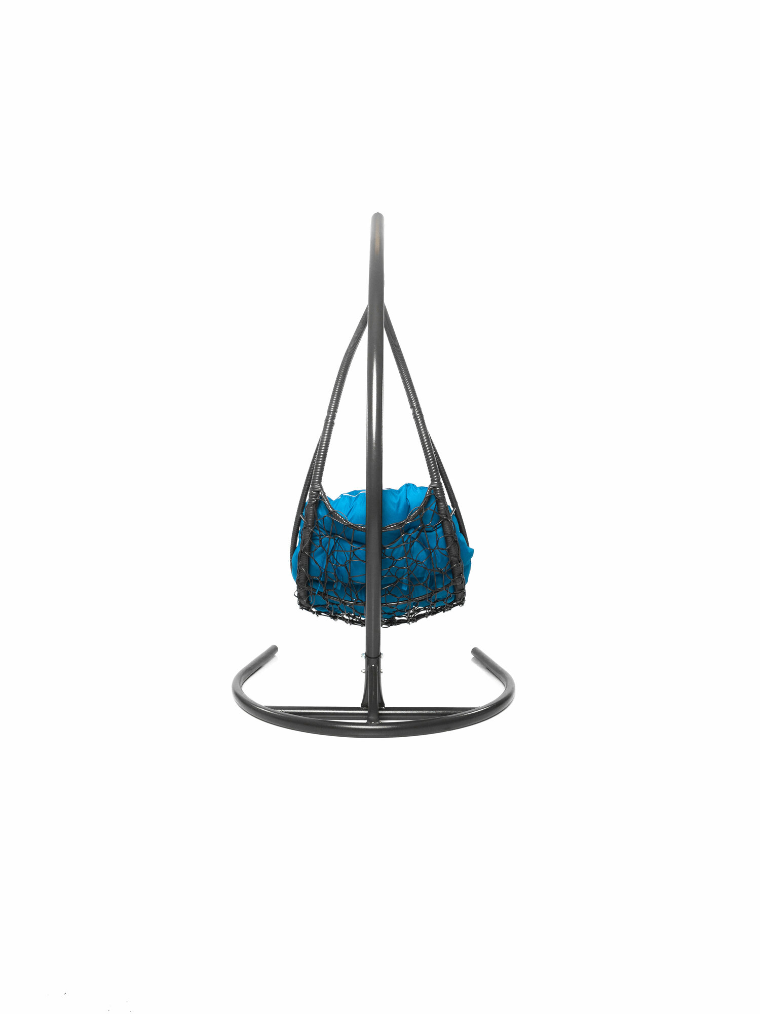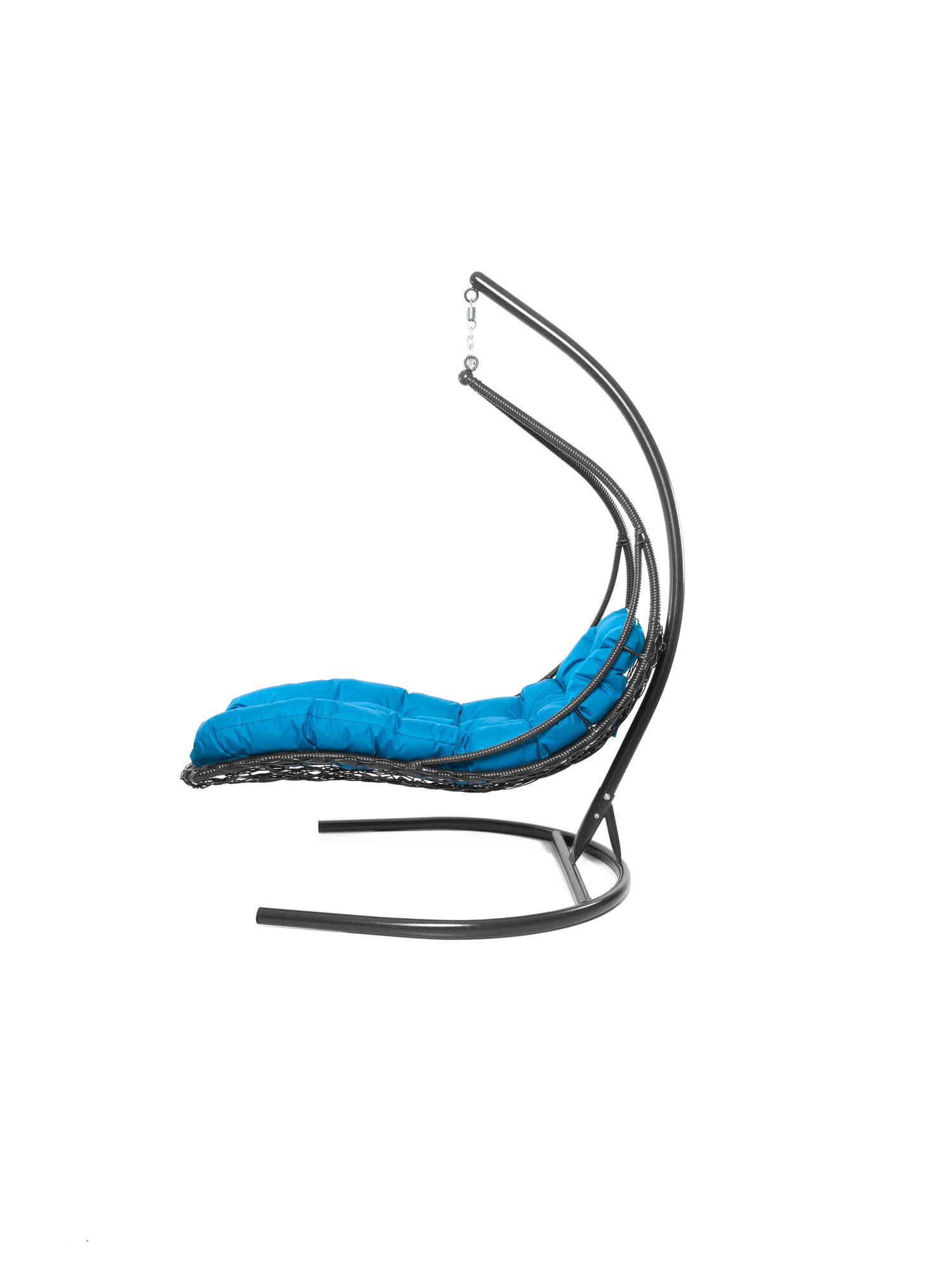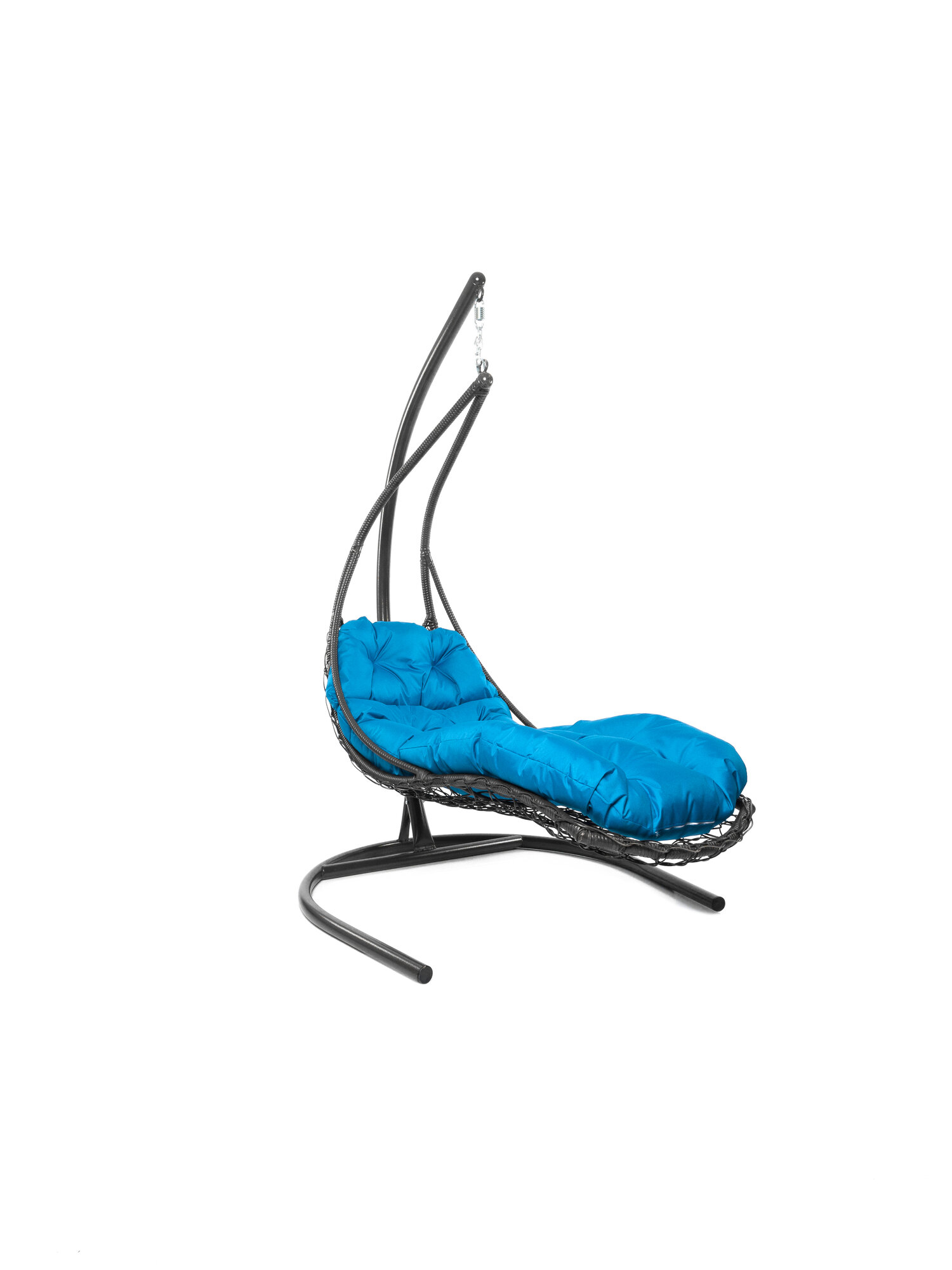 Подвесное кресло лежачее, с ротангом черное, голубая подушка