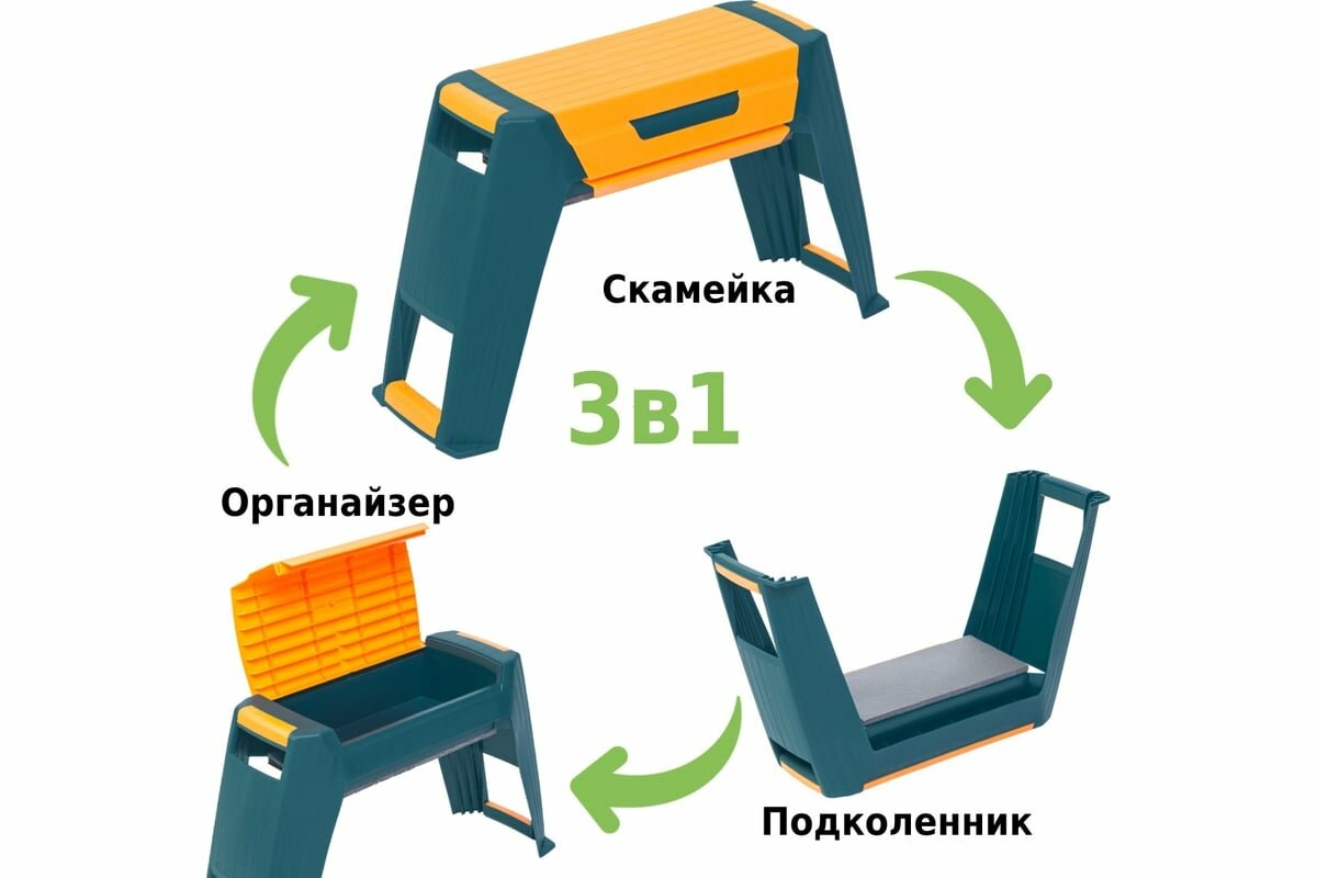 Скамейка-перевертыш садовая Helex 3 в 1 пластиковая, органайзер, подколенник