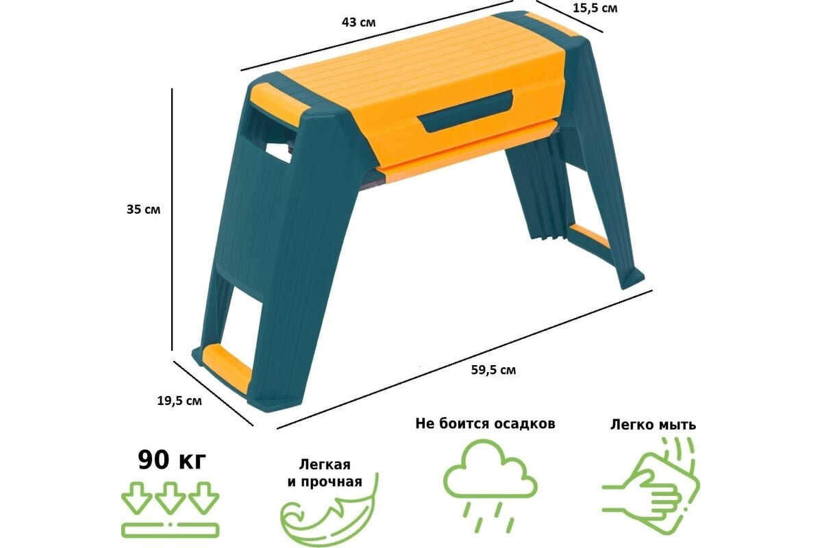 | Дополнительная информация | ширина: 19.5 см; размер сиденья: 43 х 15.5 см; 3в1: скамейка, органайзер, подколенник |