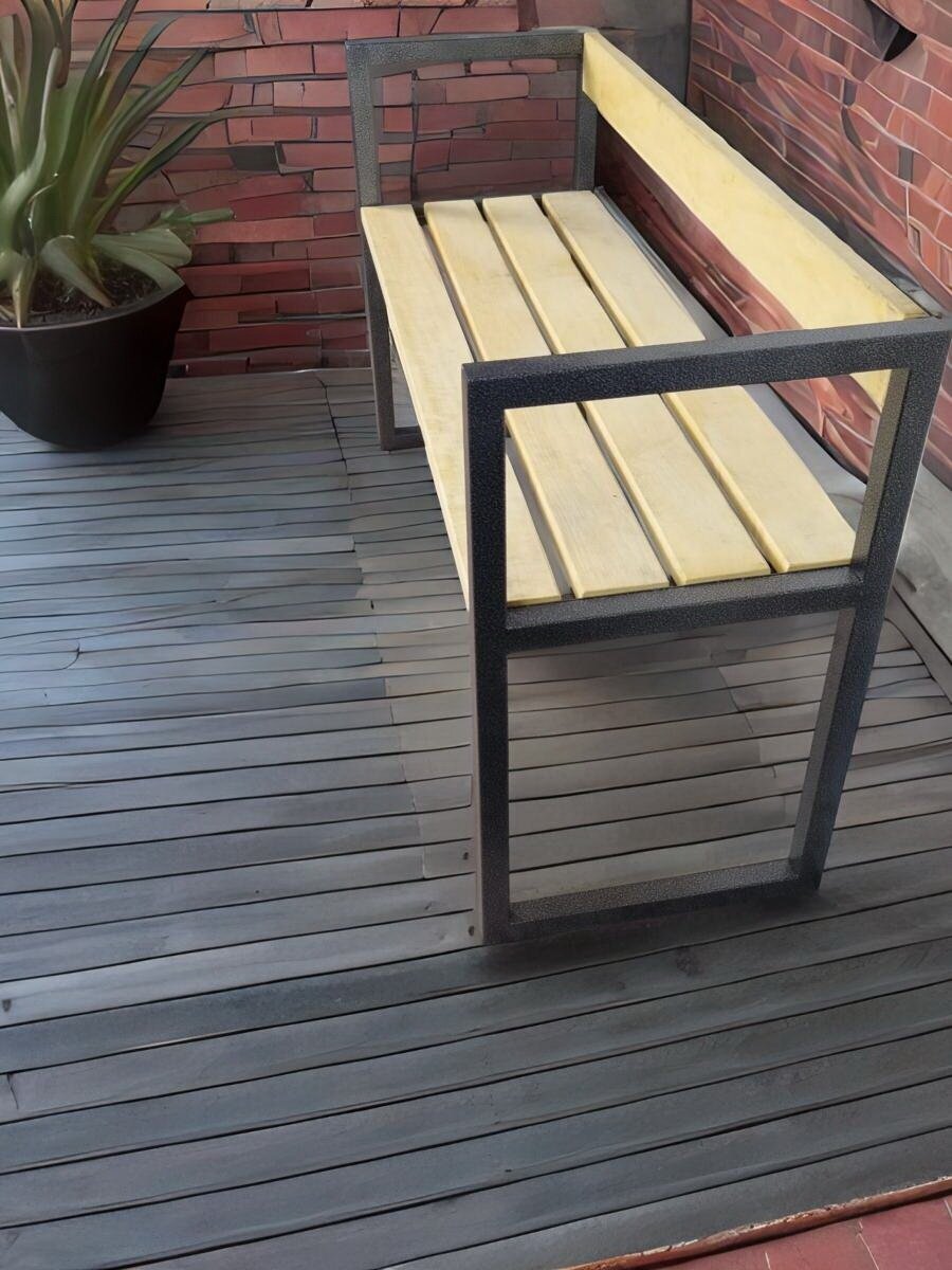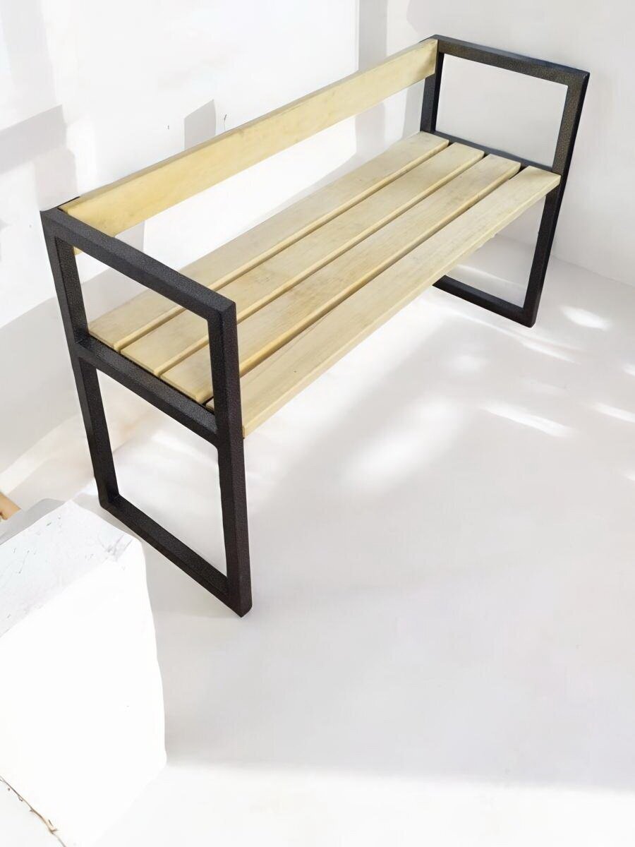 Скамейка садовая Классика с деревянными спинкой и сиденьем без покраски, лавочка для дачи с металлическим каркасом